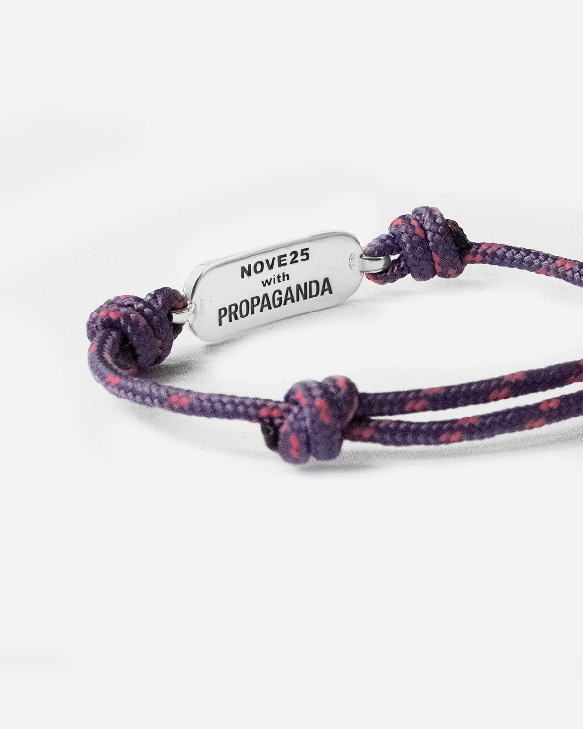 BRACELET EN CORDE VERTE AVEC PLAQUE PROPAGANDA W/ NOVE25 D'ARGENT
