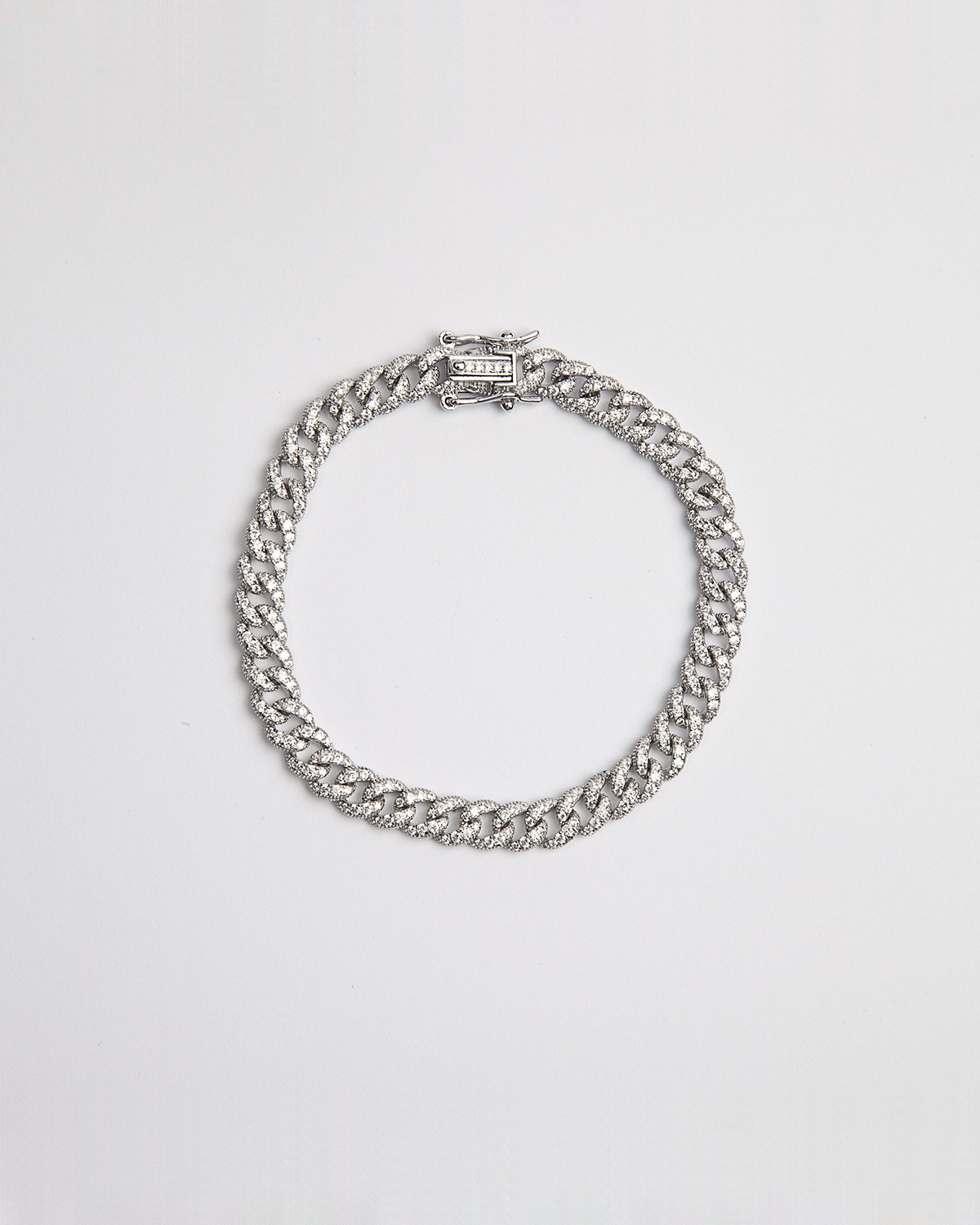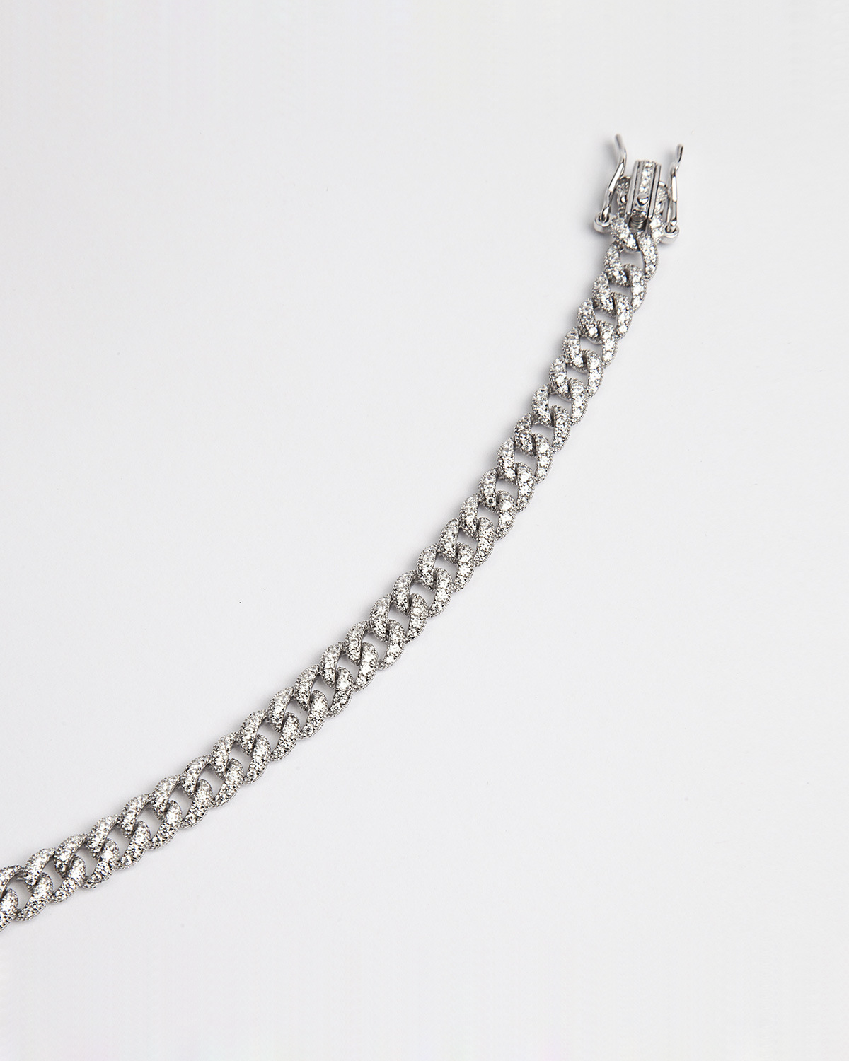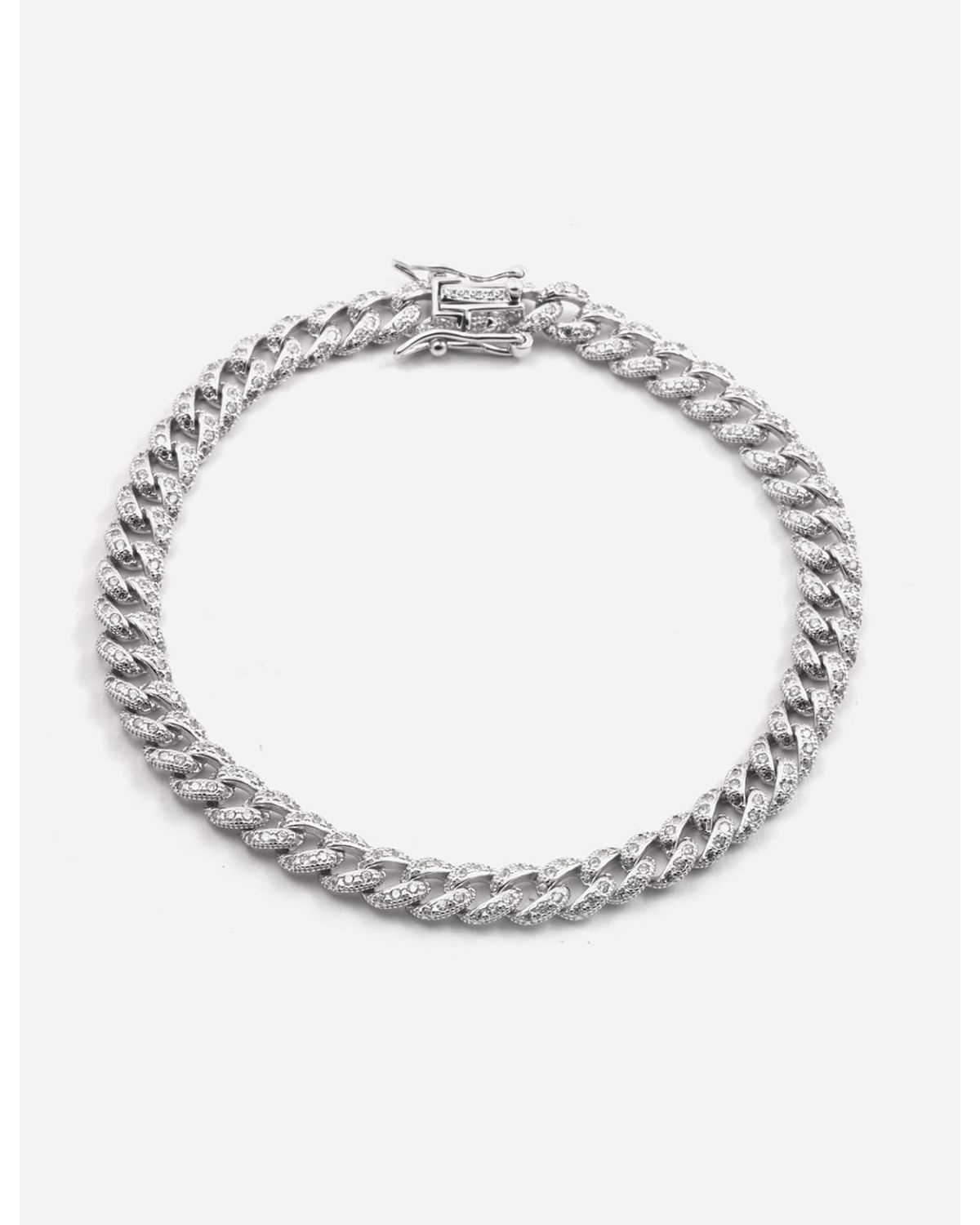 H120 Silver Oval Zircon Curb Bracelet Sterling silver Rhodium finish