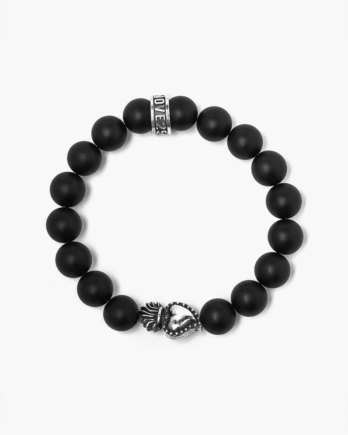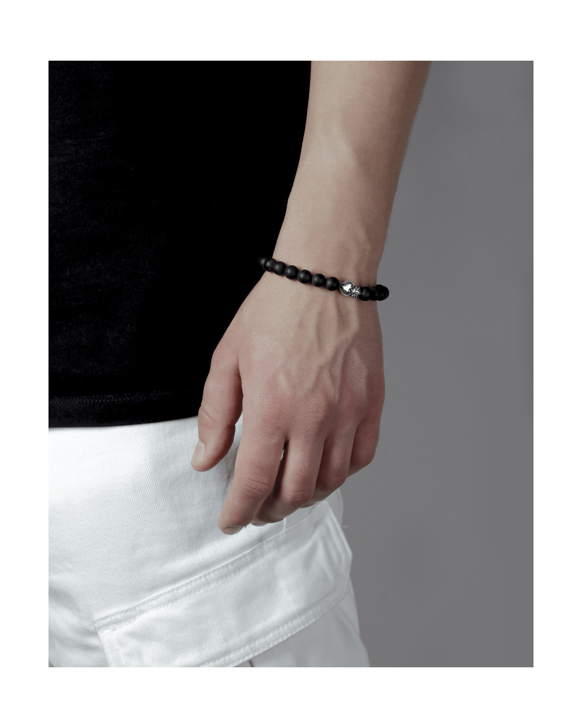 Onyx and Small Skull bracelet Onyx stones and Stelring Silver