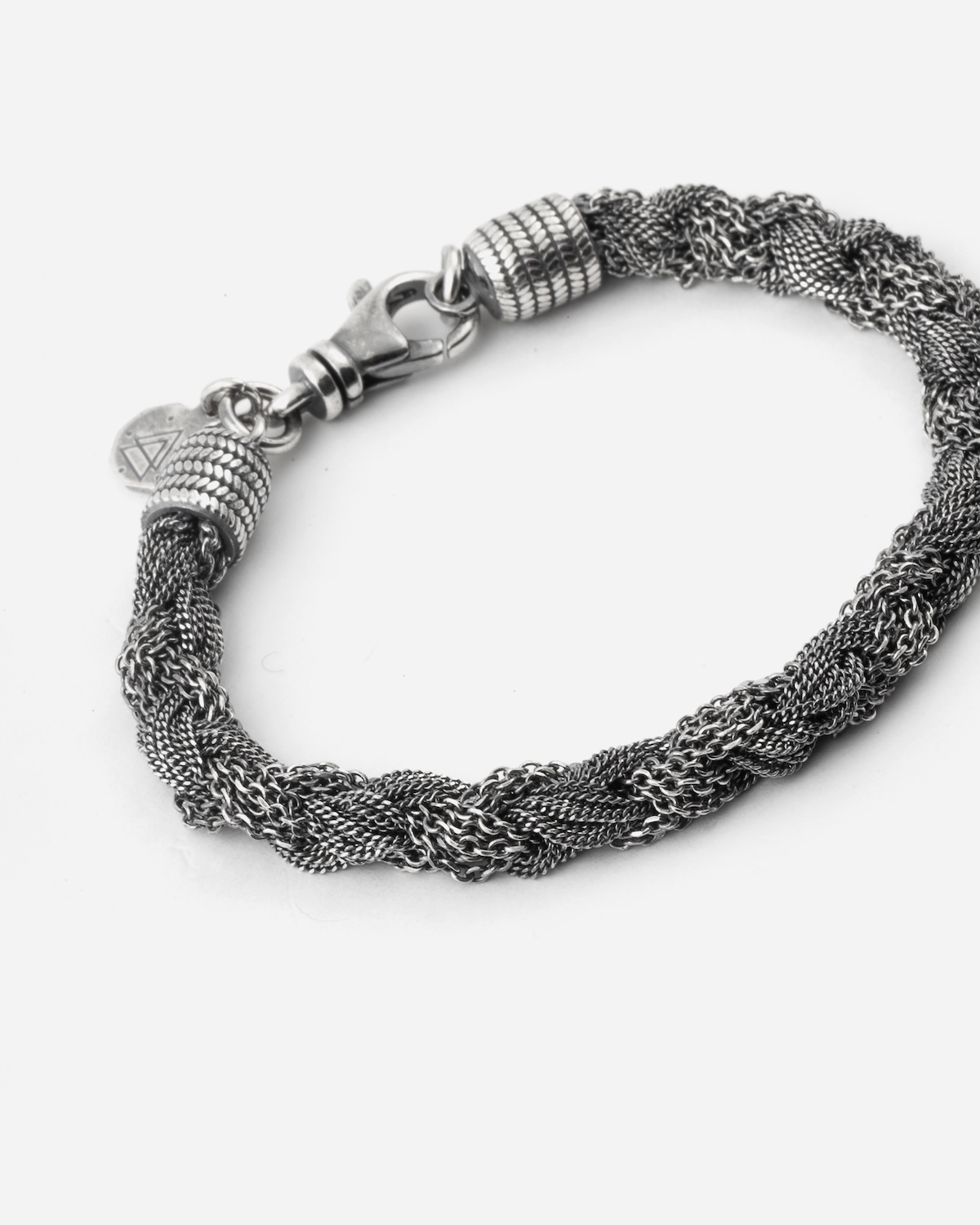 Le BRACELET DOUBLE MAILLE en version argent bruni brillant apporte sa petite touche de vintage, il rappelle le câble d’un bon vieux téléphone fixe que l’on entortillait à son doigt ou sa main lorsque l’on se racontait les derniers potins.