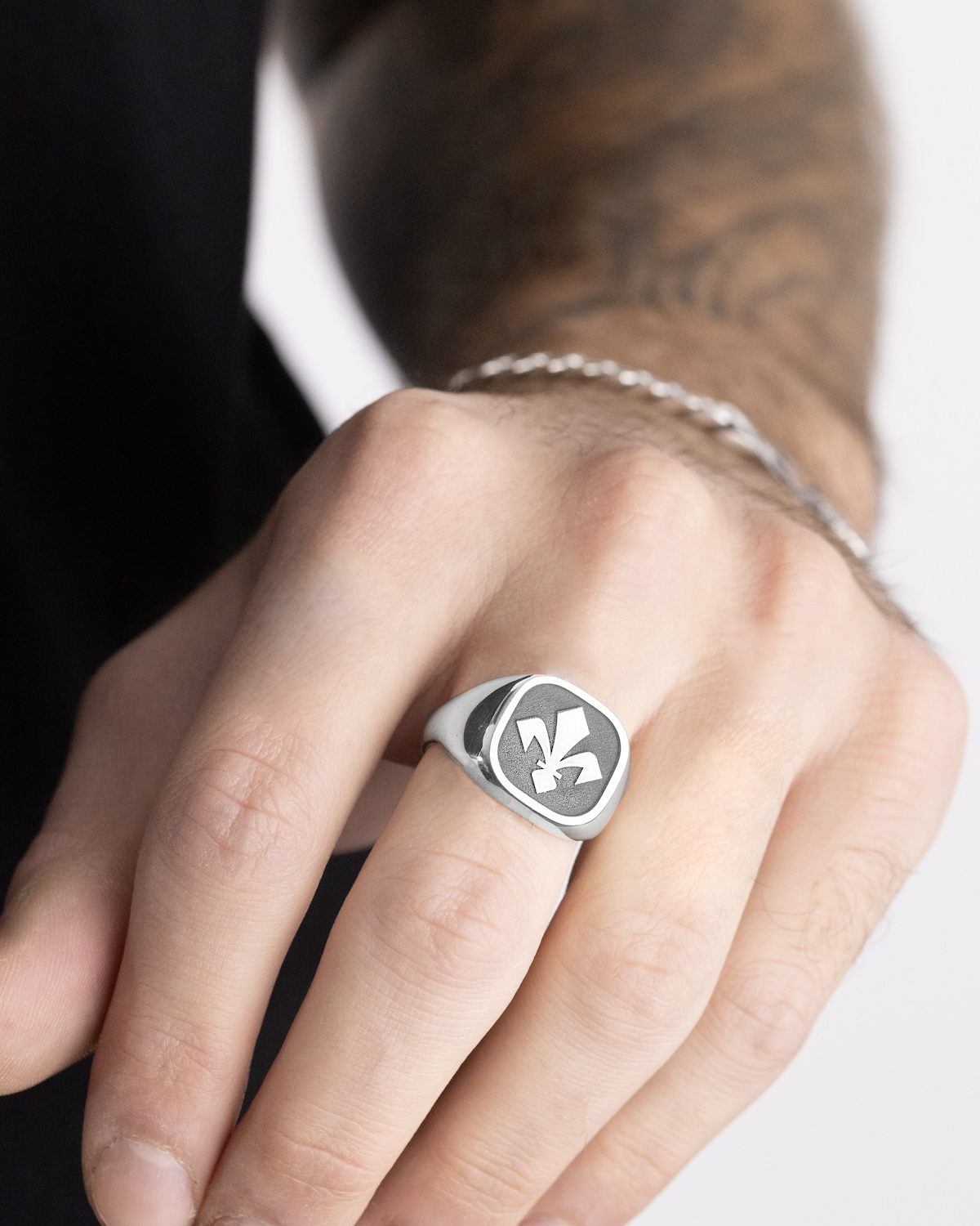 BAGUE CHEVALIÈRE CARRÉE GIGLIO FIORENTINA EN ARGENT PERSONNALISABLE