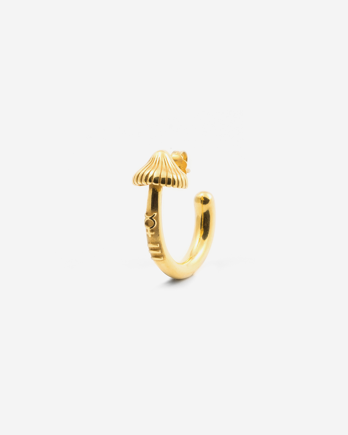Petite et circulaire, la boucle d’oreille champignon est un détail qui, une fois décelé, peut révéler les vérités les plus cachées. Le champignon magique, couplé à la clé et à la serrure, dépasse la nature et nous projette au-delà des frontières de la conscience.