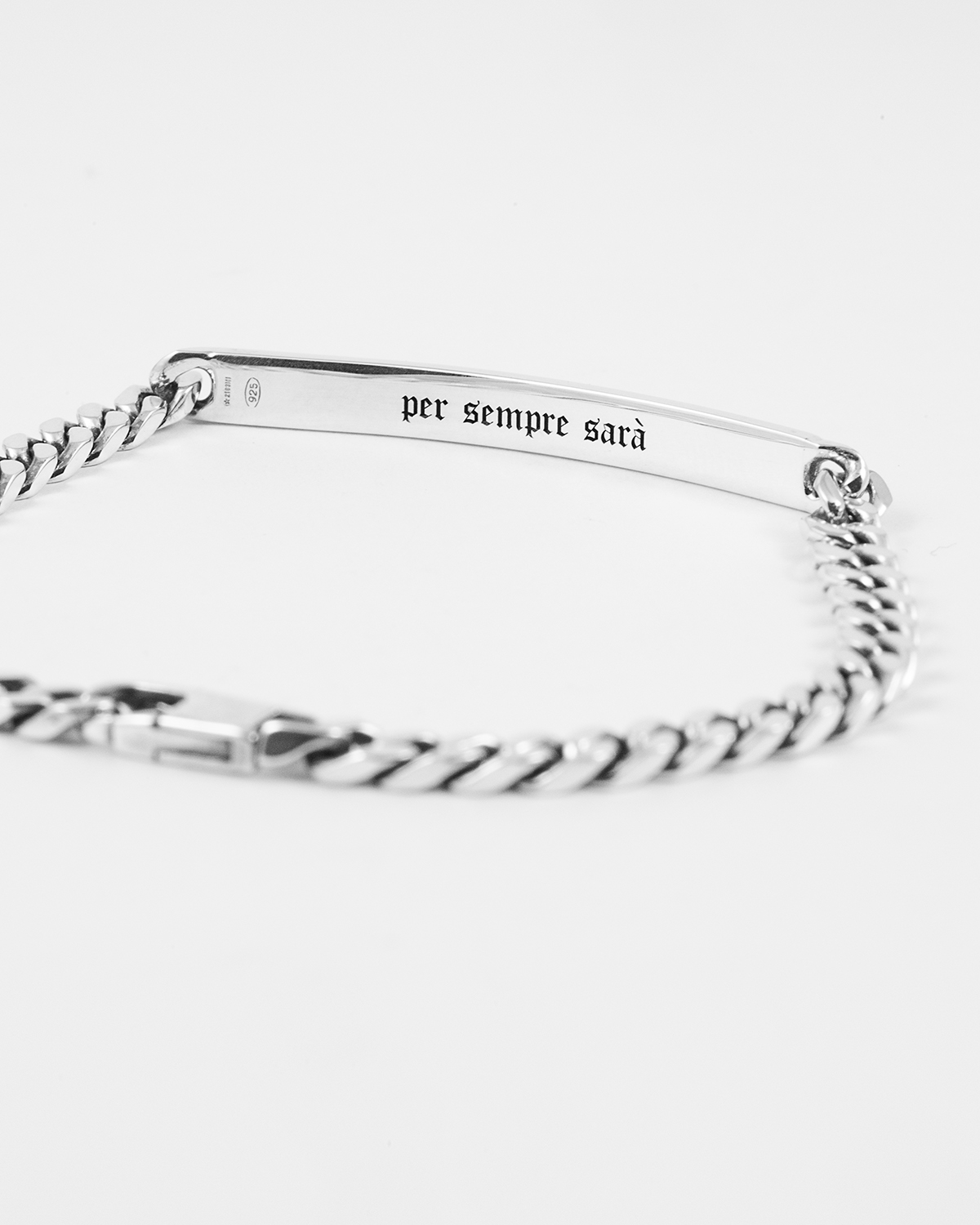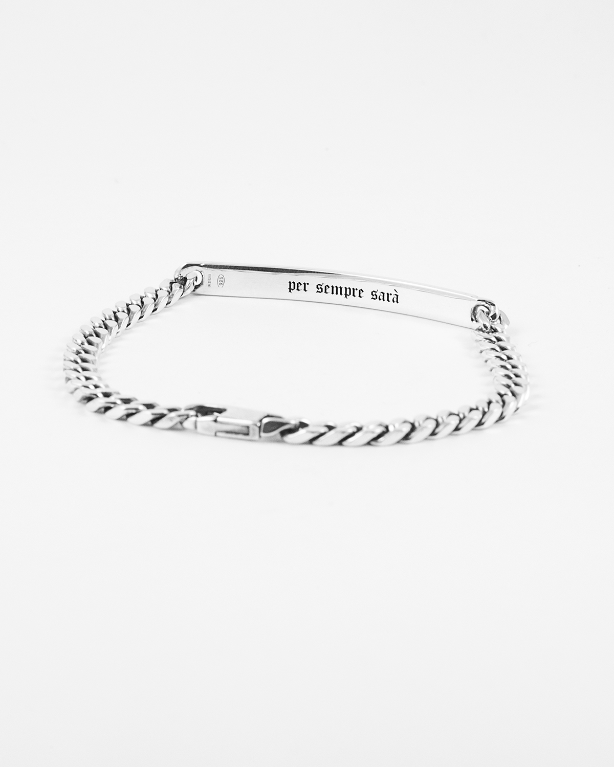 The 150 Square Curb Chain Bracelet With Plate is part of the Curb Collection and is made in 925 Sterling Silver. Every Nove25 jewel is designed and produced in Italy using the most modern technologies then hand finished to ensure maximum detail and the highest quality. This jewel finish is Polished and it is available in the following sizes: 19-21 cm.