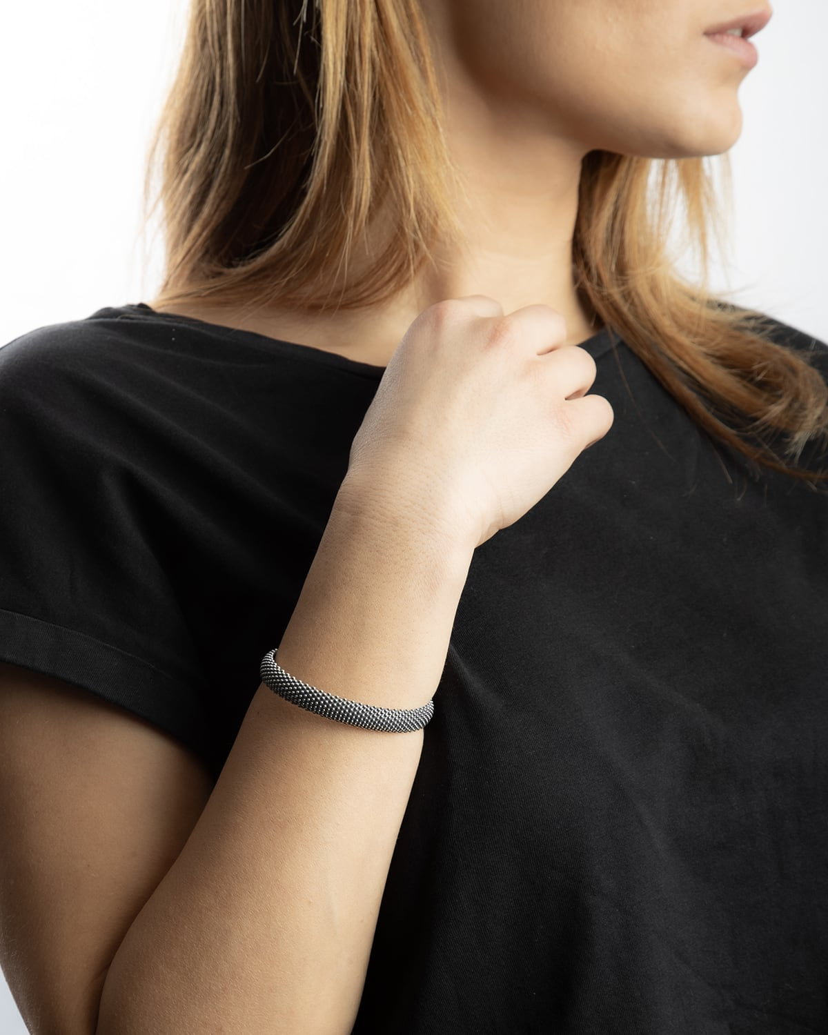 Small Dotted Curb BraceletSterling SilverPolished burnished finishLink sizes: 10*3 mm