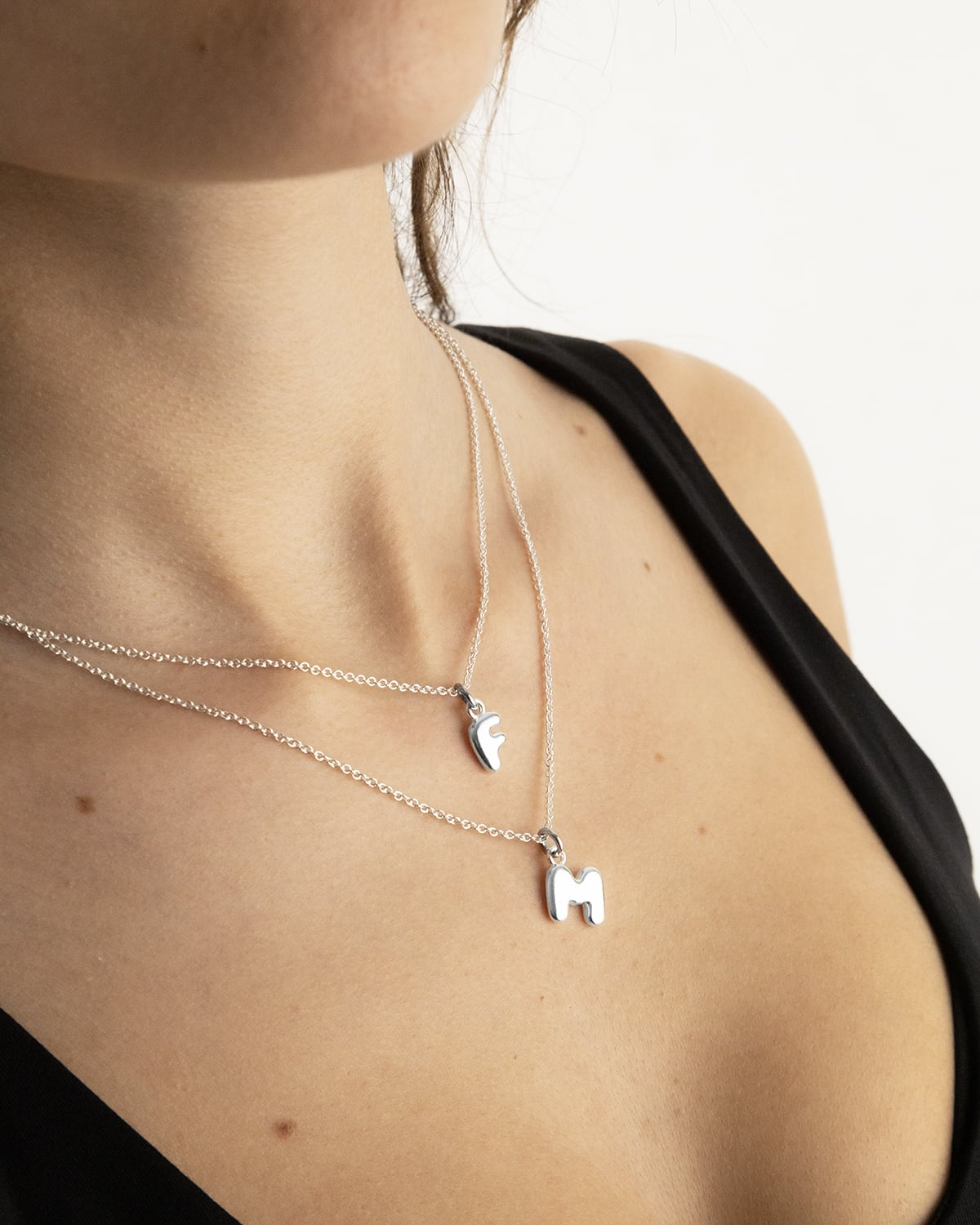 Pendentifs alphabétiques audacieux, simples ou modulaires, dans leur version argentée.