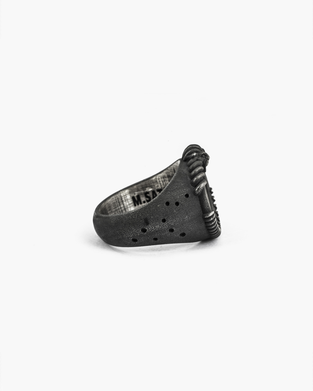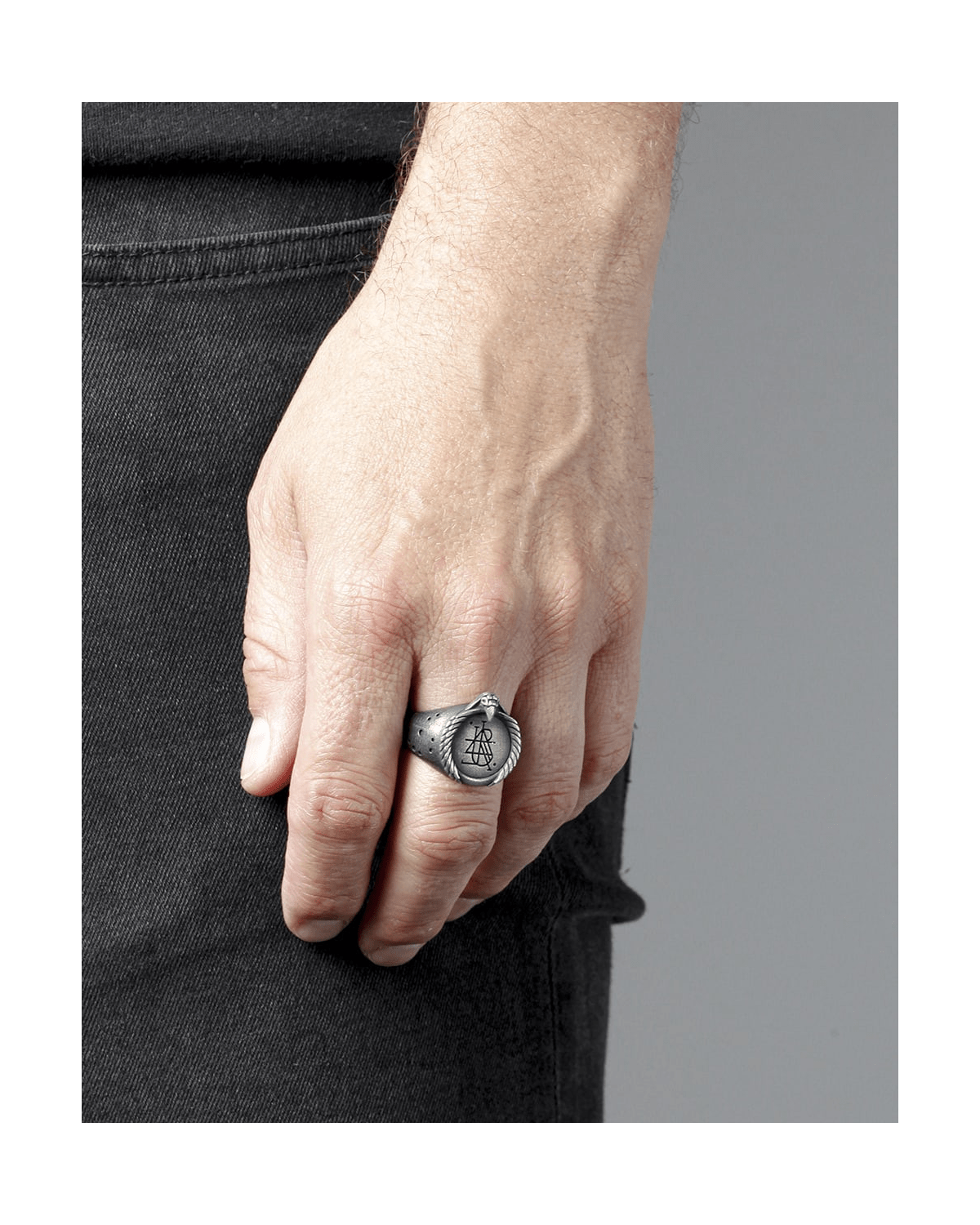 The Sterling Silver Ophis Leo Signet Ring has been handcrafted by a team of highly-skilled silversmiths in Nove25 milanese workshop. A collection created in collaboration with the tattoo artist Mirko Sata and inspired by Zodiac. The sign in question is Leo, a fire sign ruled by the sun.