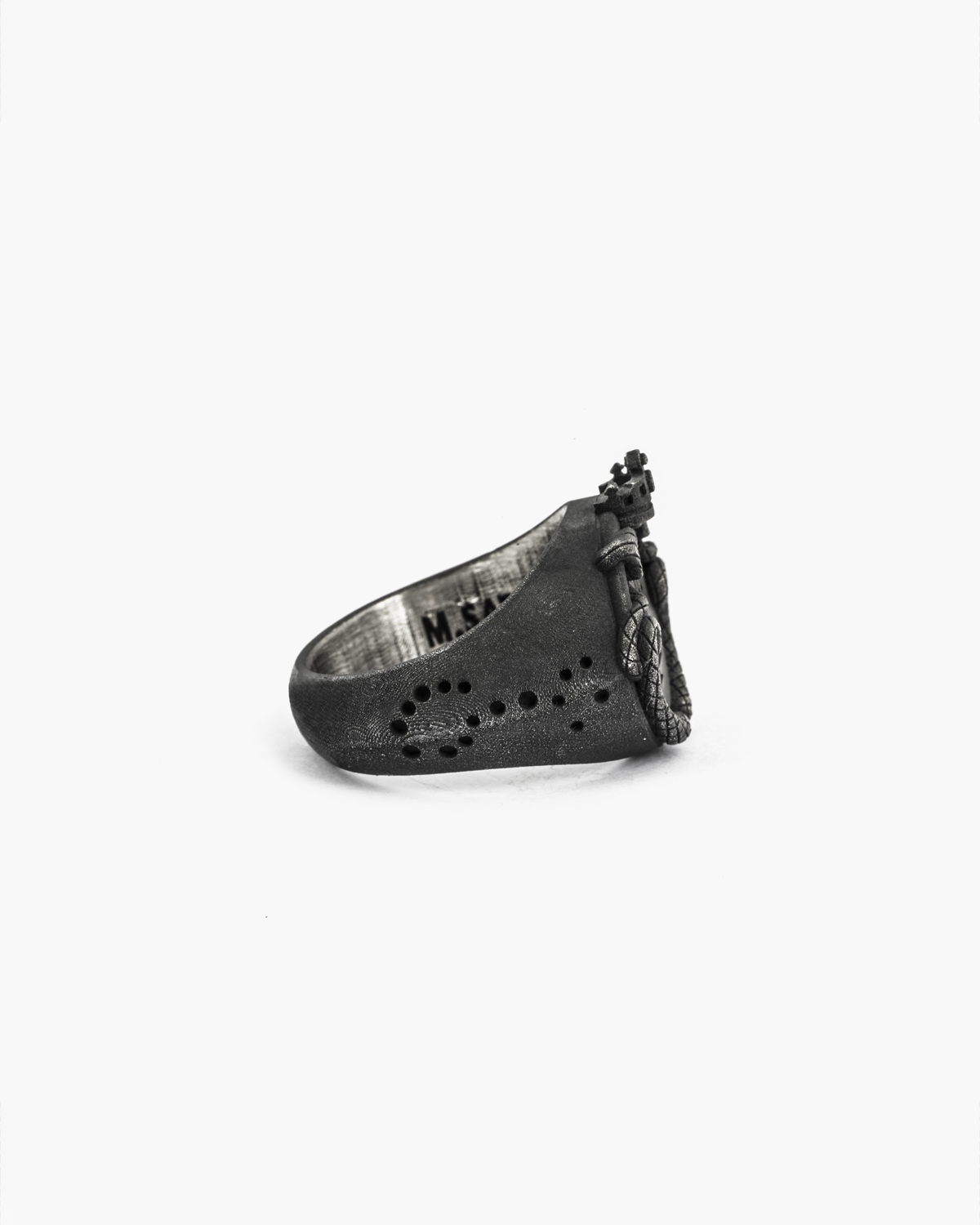 In the inner crown of the ring we find an "indelible" mark with the Nove25 ennagon and Mirko Sata initials.