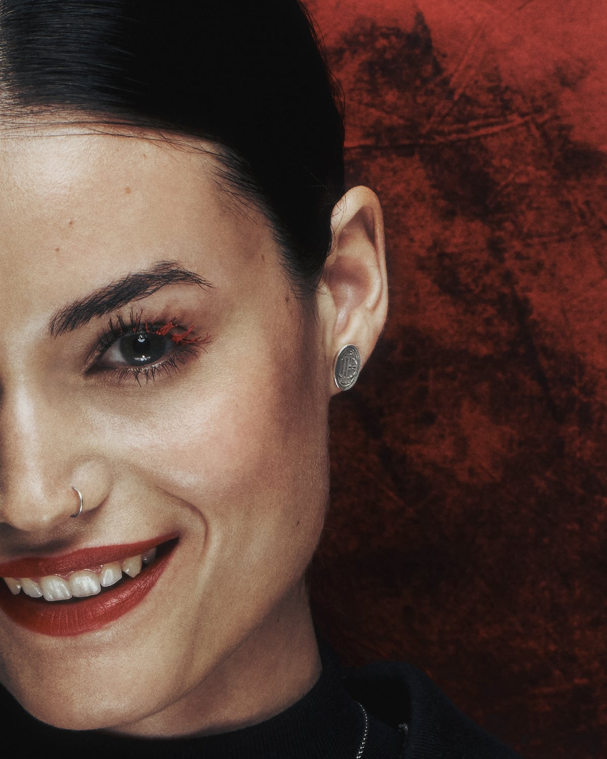 Small and bright, the AC Milan Crest earring adorns every fan's earlobe and, on the back, celebrates the collaboration between Nove25 and the club.