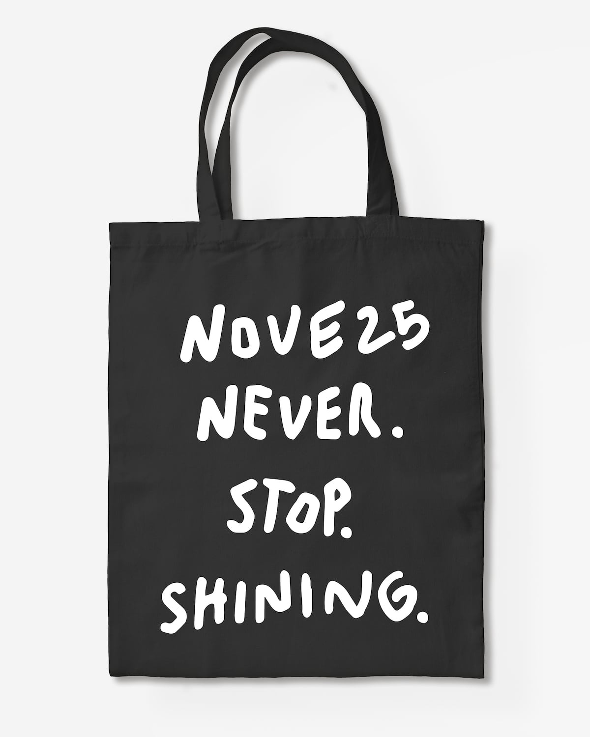 Le nuove Shopper Nove25, in 100% Cotone, si presentano in tre stili diversi. Che tu sia Pop, Classic o Rock, scegli il disegno e il font che più ti rappresentano, per non smettere mai di brillare.