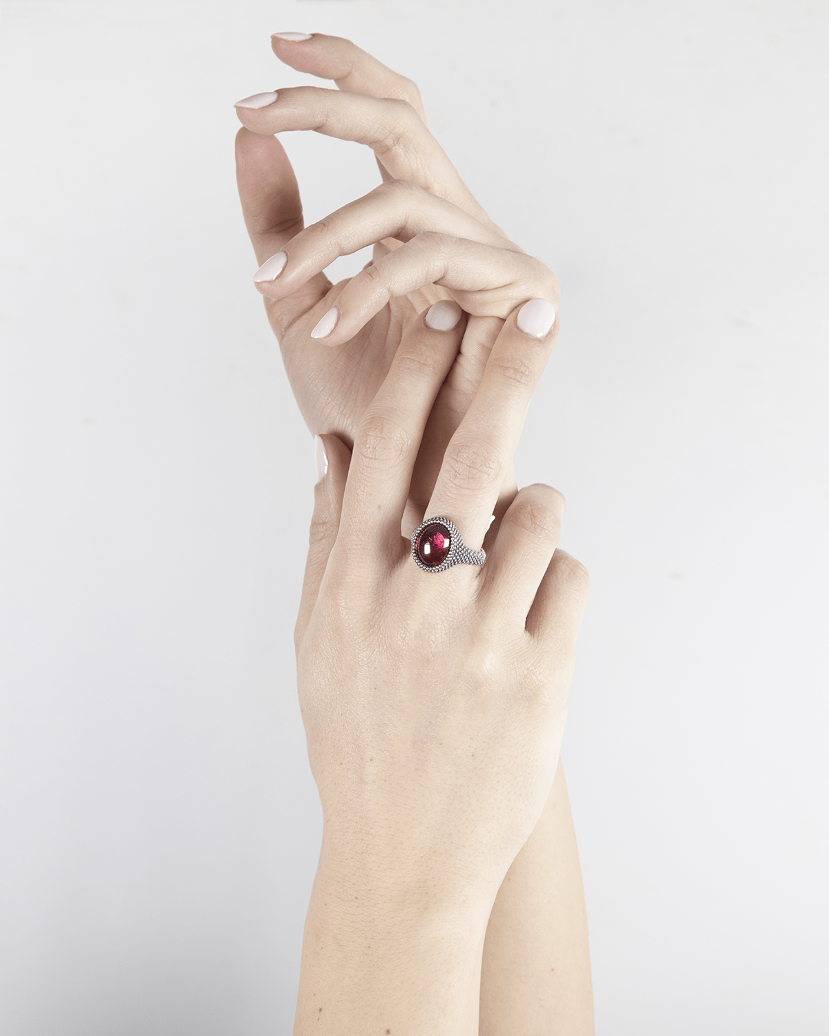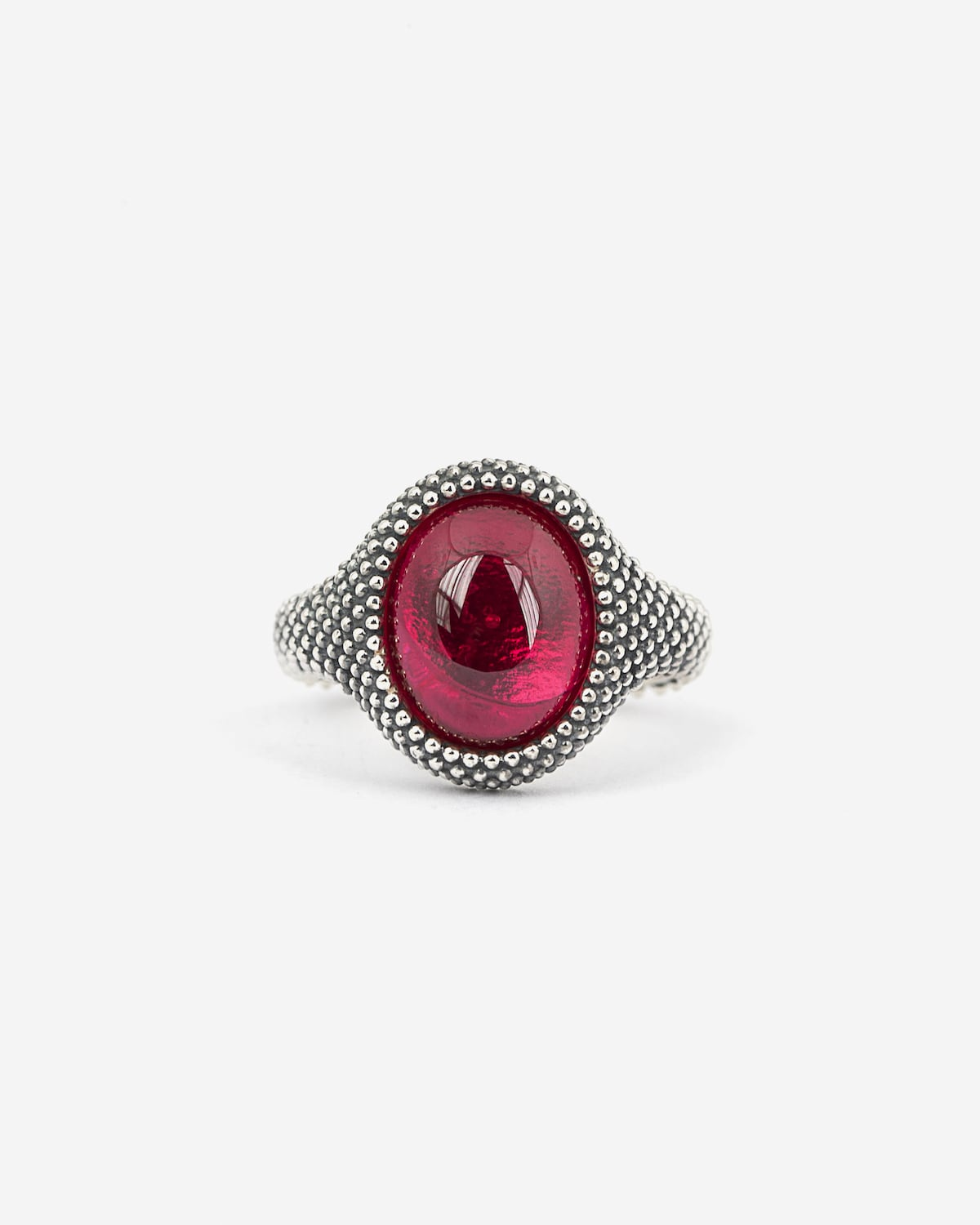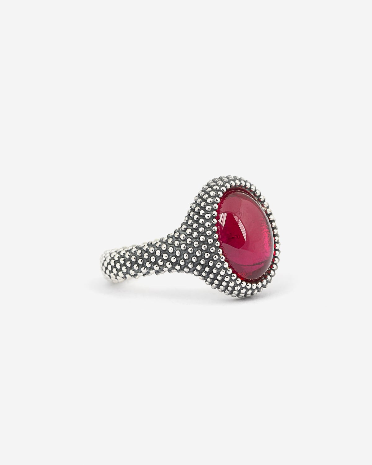 Fede puntinata solitario corindone Argento 925‰ con pietra corindone Finitura brunita lucida