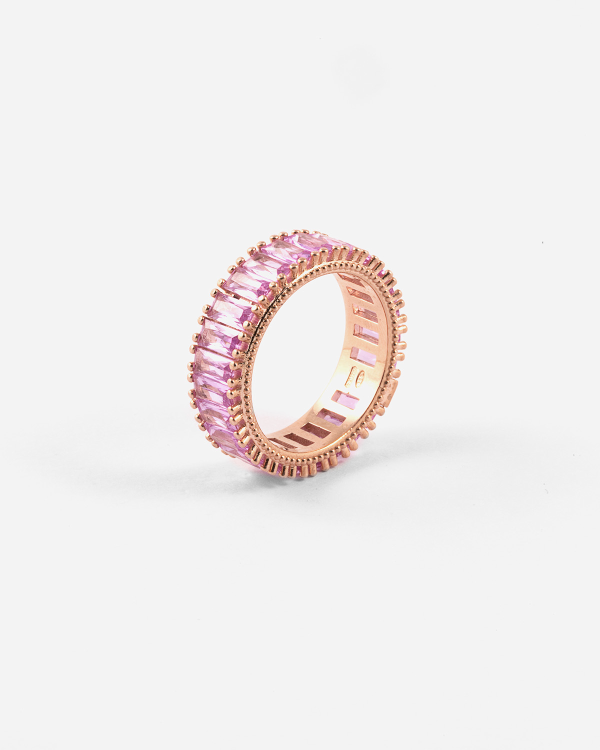 Due strati, due modi per brillare. La fede composta di due fasce, di cui una più piccola in brillanti, ricalca lo spirito bold della collezione primaverile e dimostra che gli opposti si attraggono e insieme brillano il doppio.