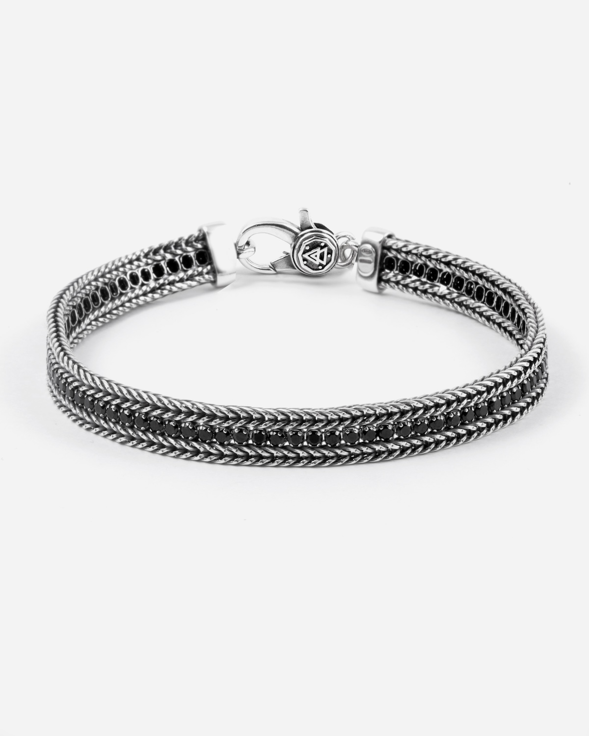 Il Bracciale Tennis Doppia Coda Di Volpe Black Bold Foxtail Con Brillanti fa parte della Collezione Timeless ed è realizzato in Argento 925. Come tutti i gioielli Nove25 anche questo Bracciale viene progettato e lavorato in Italia mediante l'utilizzo delle più moderne tecnologie e rifinito a mano per garantirne il massimo dettaglio e la più elevata qualità. Questo gioiello viene proposto con una finitura Brunito Lucido ed è disponibile nelle seguenti taglie: 18-20 cm.