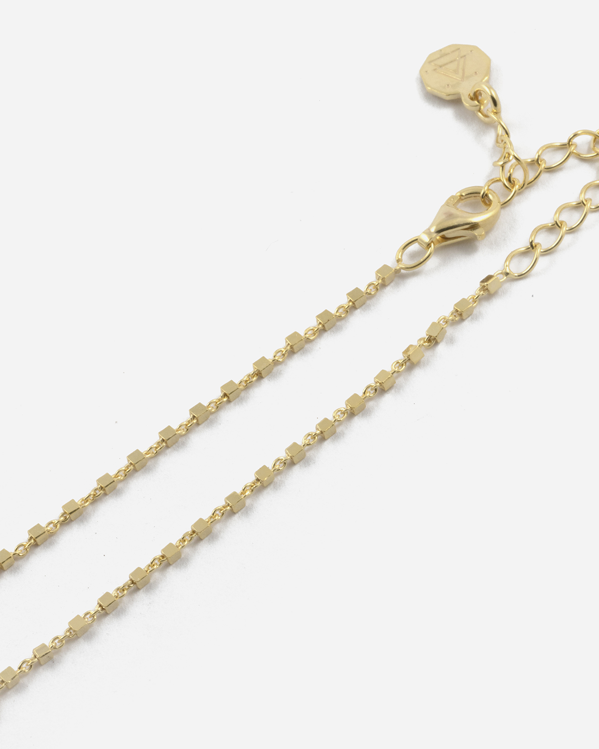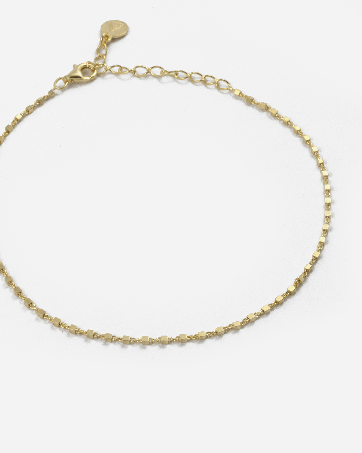 Nella sua versione dorata, i cubi dorati della cavigliera Golden Dice fanno della luminosità il loro punto forte, per catturare e abbagliare l'occhio di chi guarda.​