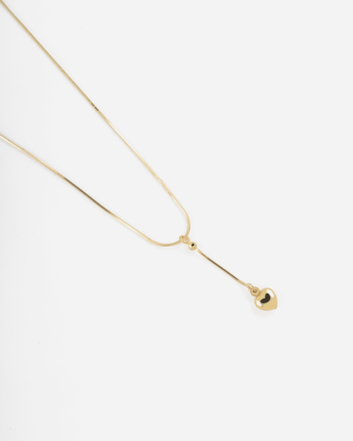 La Collana Cravattino Cuore Golden Heartie, nella sua versione color oro giallo, presenta un pendente sottile che termina con un piccolo cuore.