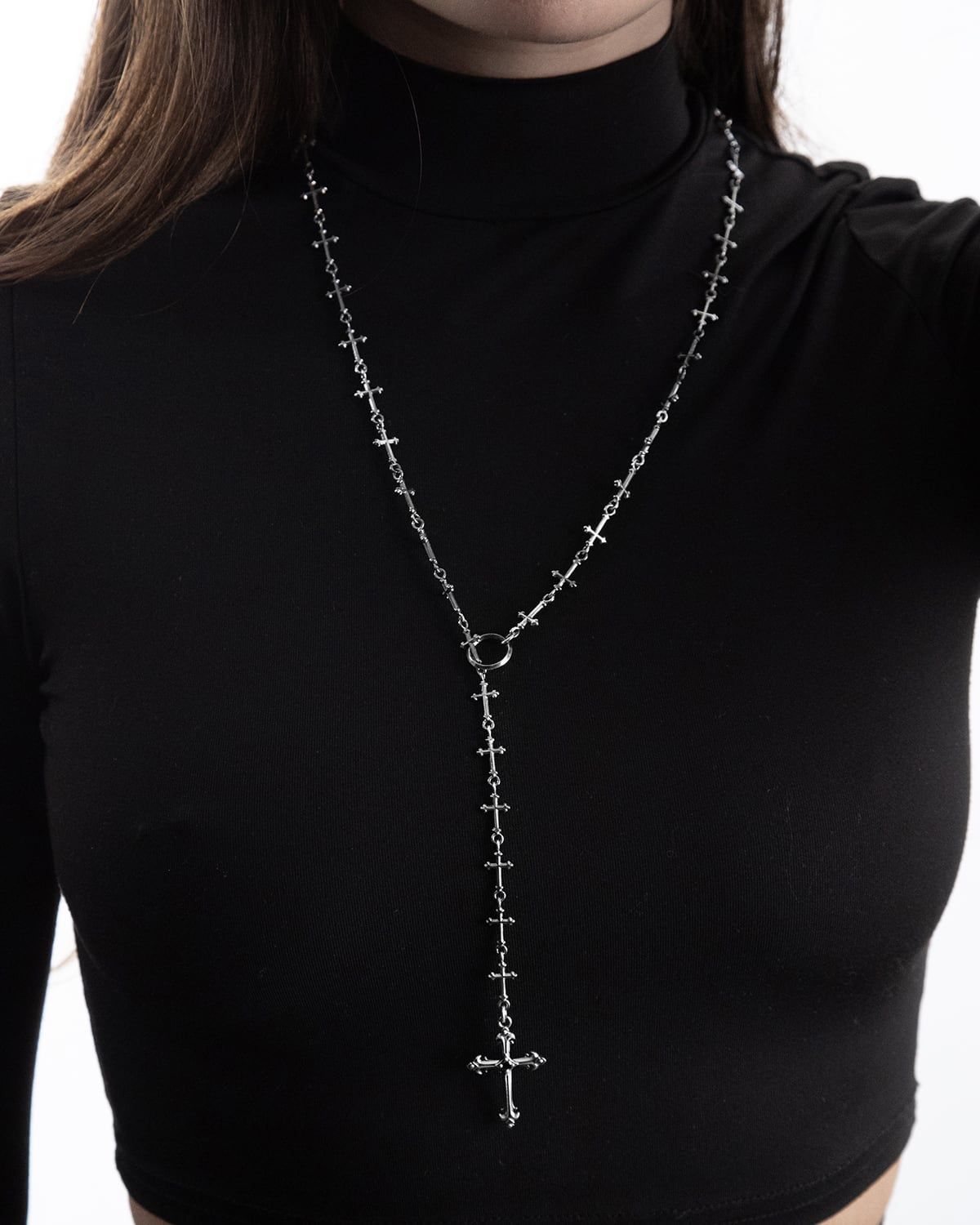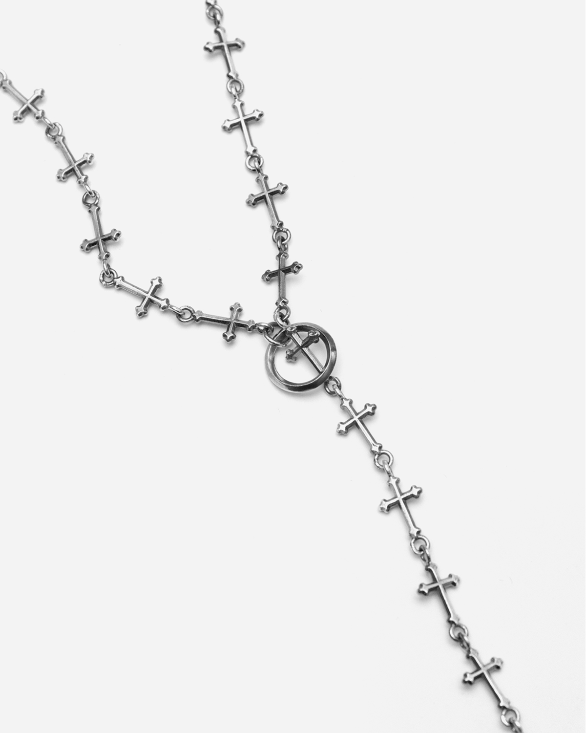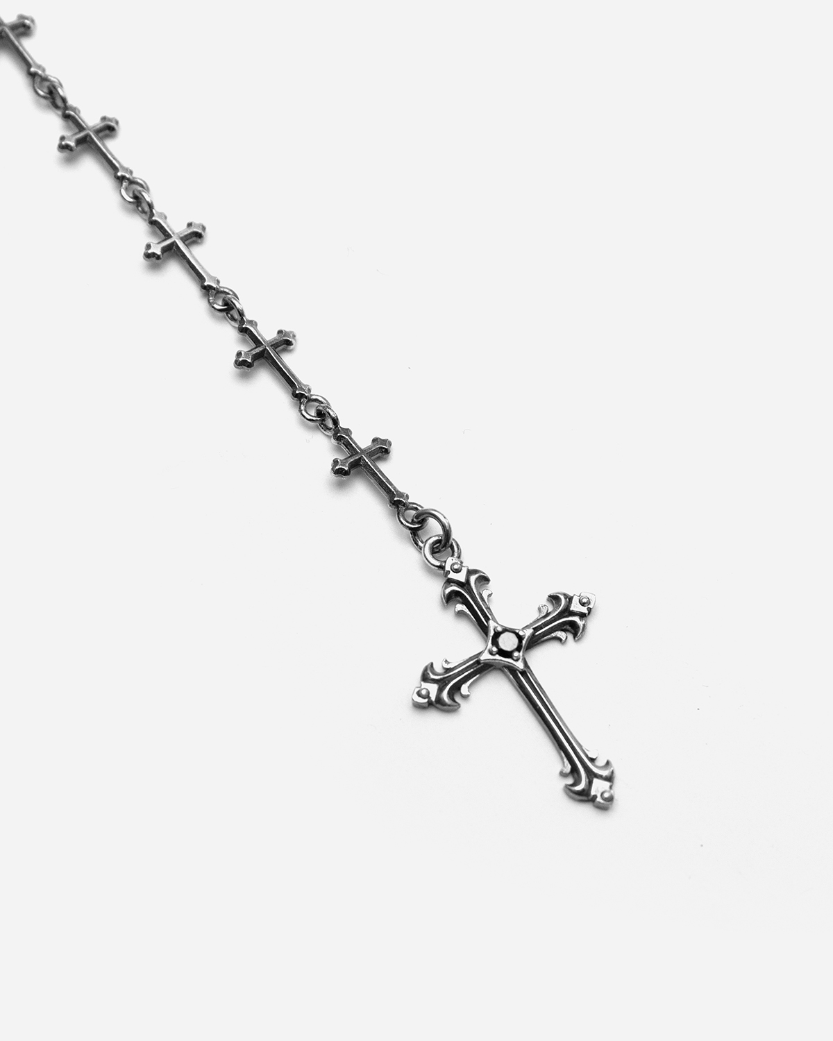 Nel bracciale Croci la croce classica, da simbolo singolo, diventa decorazione e si moltiplica in un gioiello dal fascino antico.