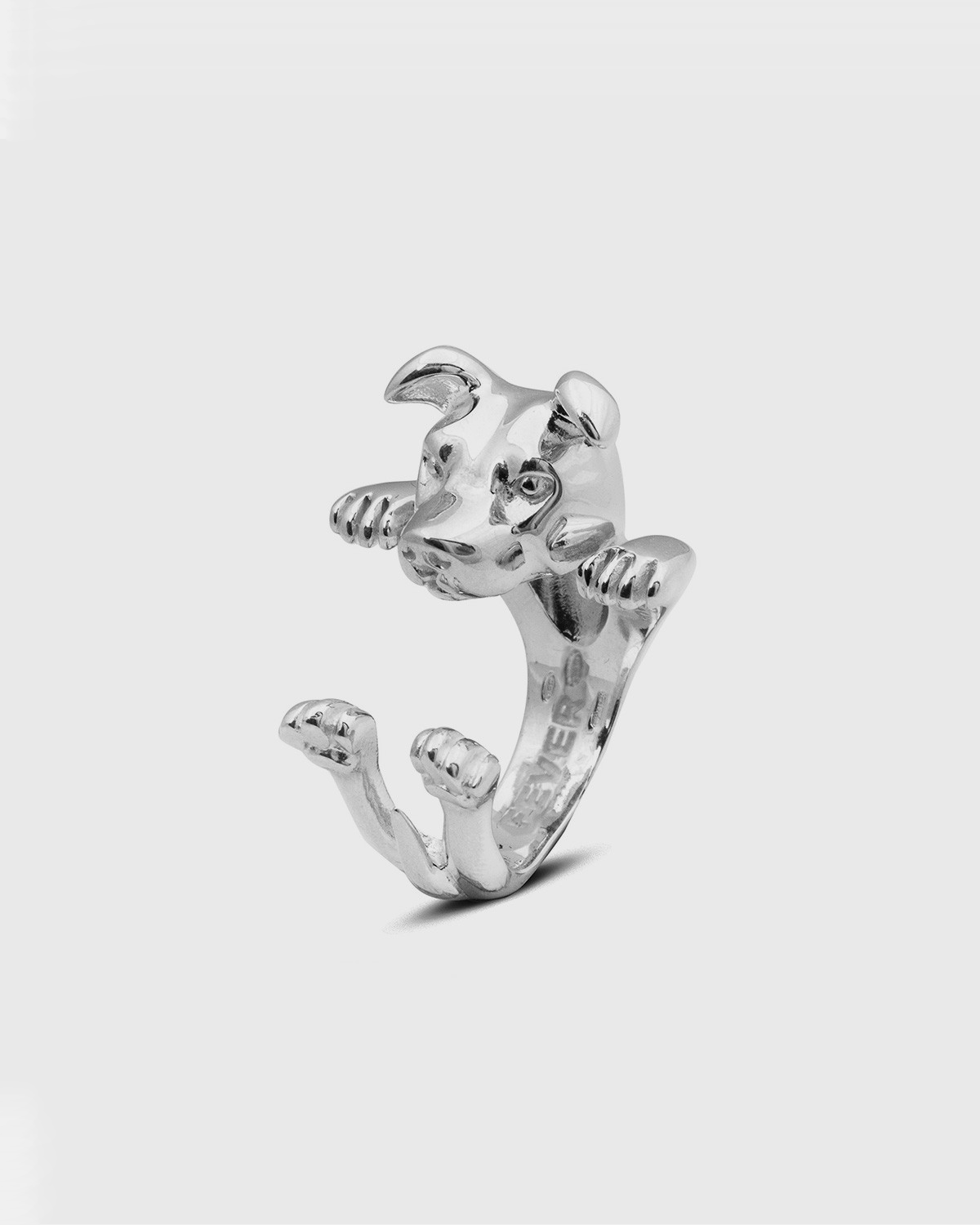 L'Anello Hug American Staffordshire fa parte della Collezione Dog Fever ed è realizzato in Argento 925. Come tutti i gioielli Nove25 anche questo Anello viene progettato e lavorato in Italia mediante l'utilizzo delle più moderne tecnologie e rifinito a mano per garantirne il massimo dettaglio e la più elevata qualita'. Questo gioiello viene proposto con una finitura Lucida ed è disponibile nelle seguenti taglie: S-M-L.