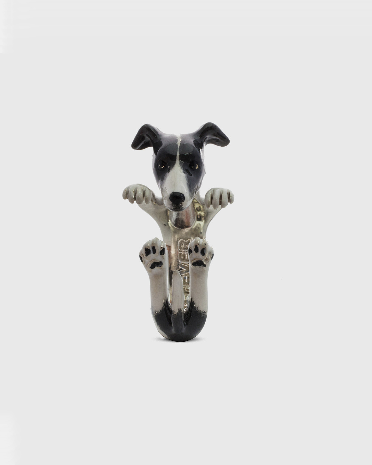 L'Anello Hug Levriero fa parte della Collezione Dog Fever ed è realizzato in Argento 925. Come tutti i gioielli Nove25 anche questo Anello viene progettato e lavorato in Italia mediante l'utilizzo delle più moderne tecnologie e rifinito a mano per garantirne il massimo dettaglio e la più elevata qualita'. Questo gioiello viene proposto con una finitura Smaltata ed è disponibile nelle seguenti taglie: M.
