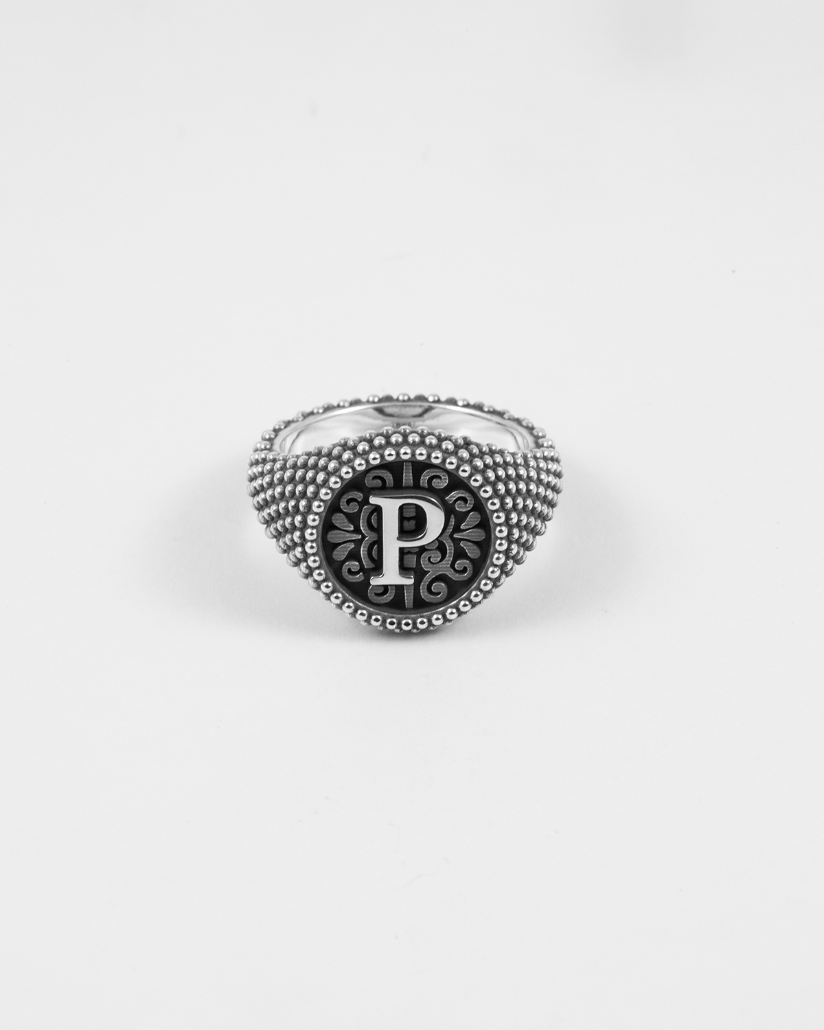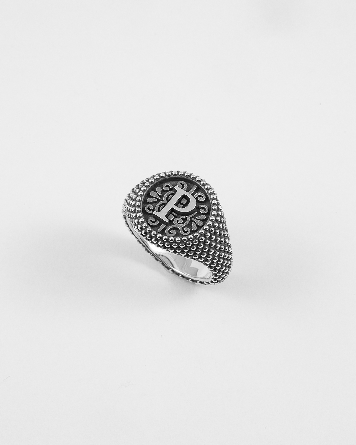 ANELLO CHEVALIER TONDO PUNTINATO CON LETTERA INIZIALE PERSONALIZZABILE