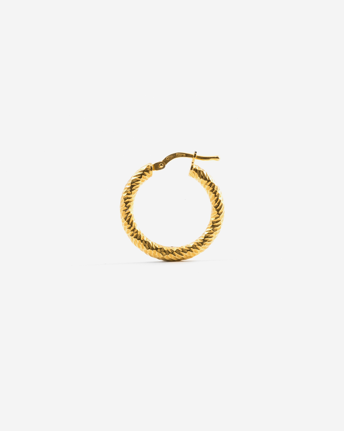 L'Orecchino Singolo Diamond Hoop Medio fa parte della Collezione Timeless ed è realizzato in Argento 925. Come tutti i gioielli Nove25 anche questo Orecchino viene progettato e lavorato in Italia mediante l'utilizzo delle più moderne tecnologie e rifinito a mano per garantirne il massimo dettaglio e la più elevata qualita'. Questo gioiello viene proposto con una finitura Oro Giallo Lucido ed è disponibile in taglia unica.