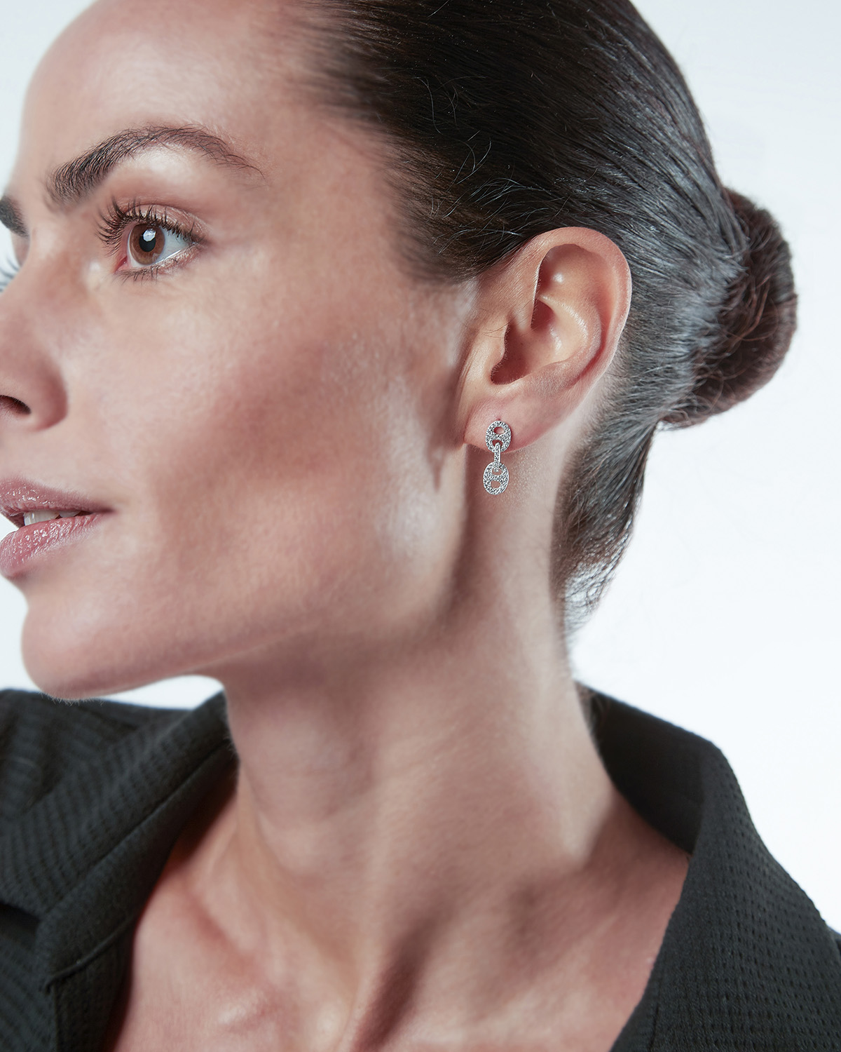 Le gocce in maglia marinara zirconata dell’orecchino Sea Drops, come rugiada, donano un punto di luce fresco e delicato all’orecchio di chi le indossa.