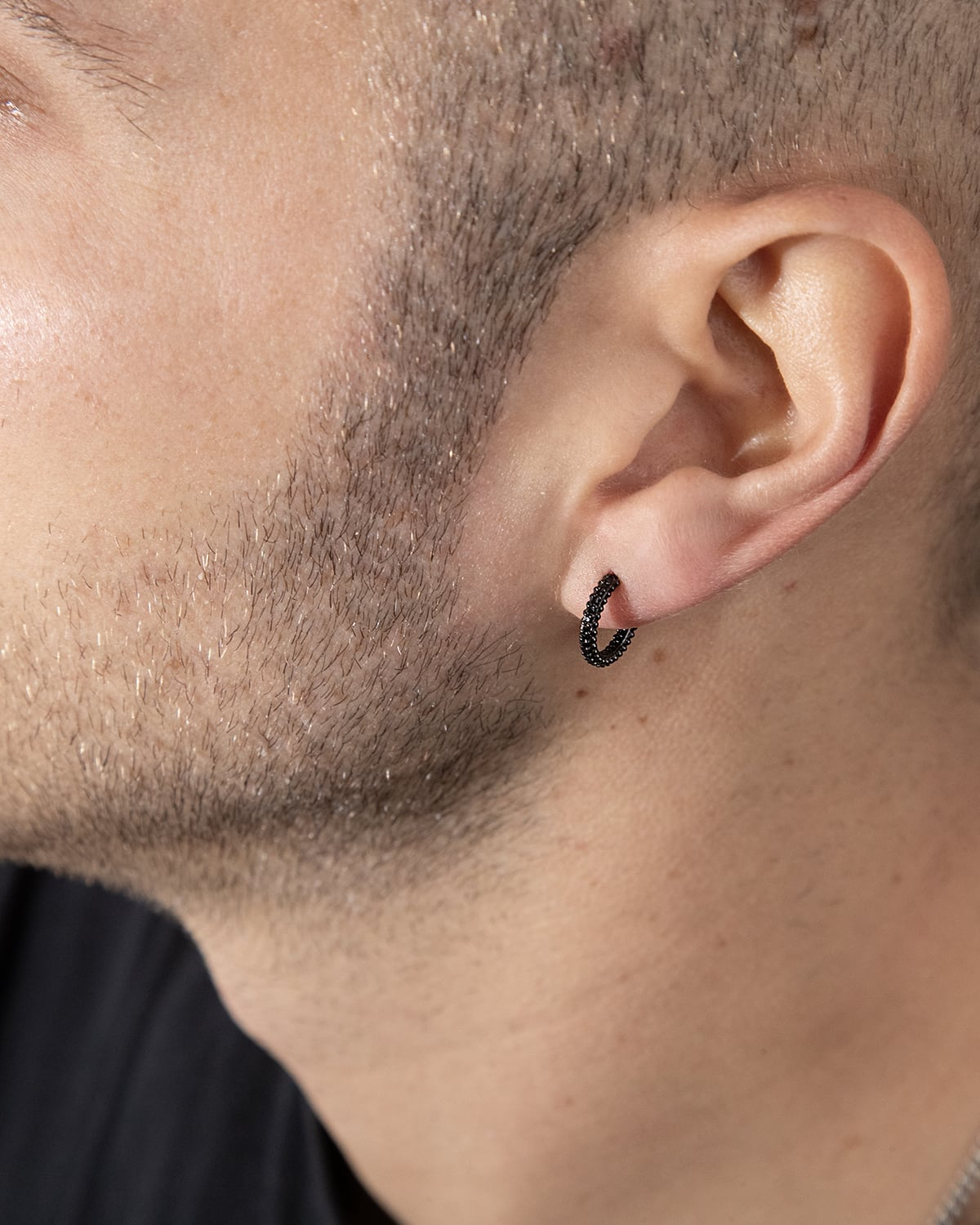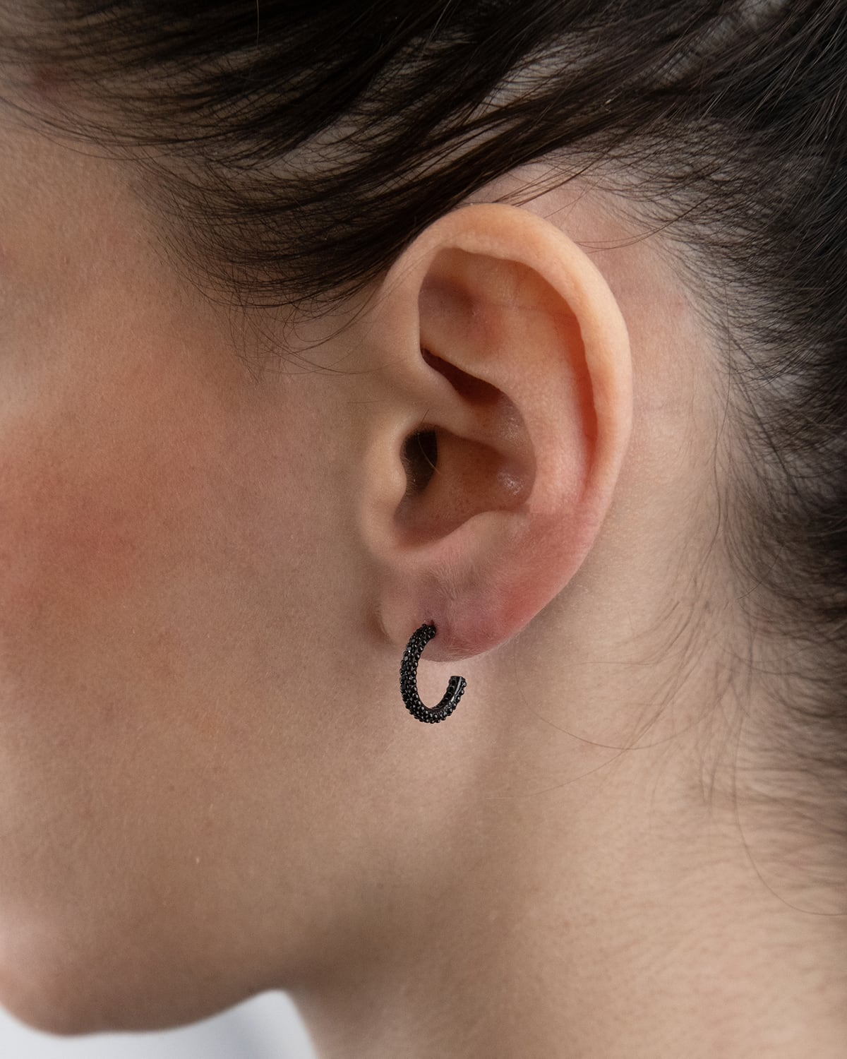 A sparkling hook, ready to unite what is still divided, in a version featuring a black cubic zirconia and ruthenium plating.