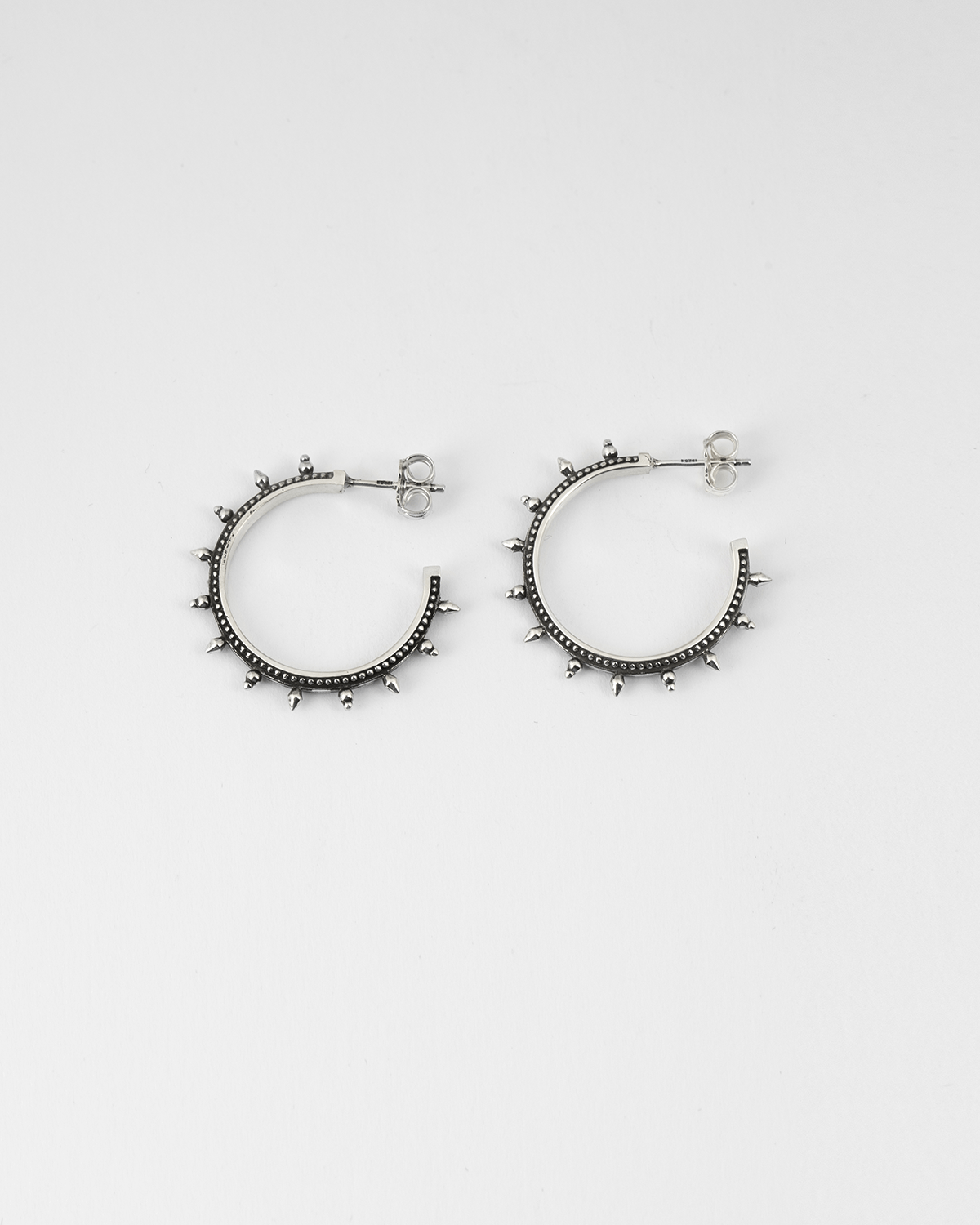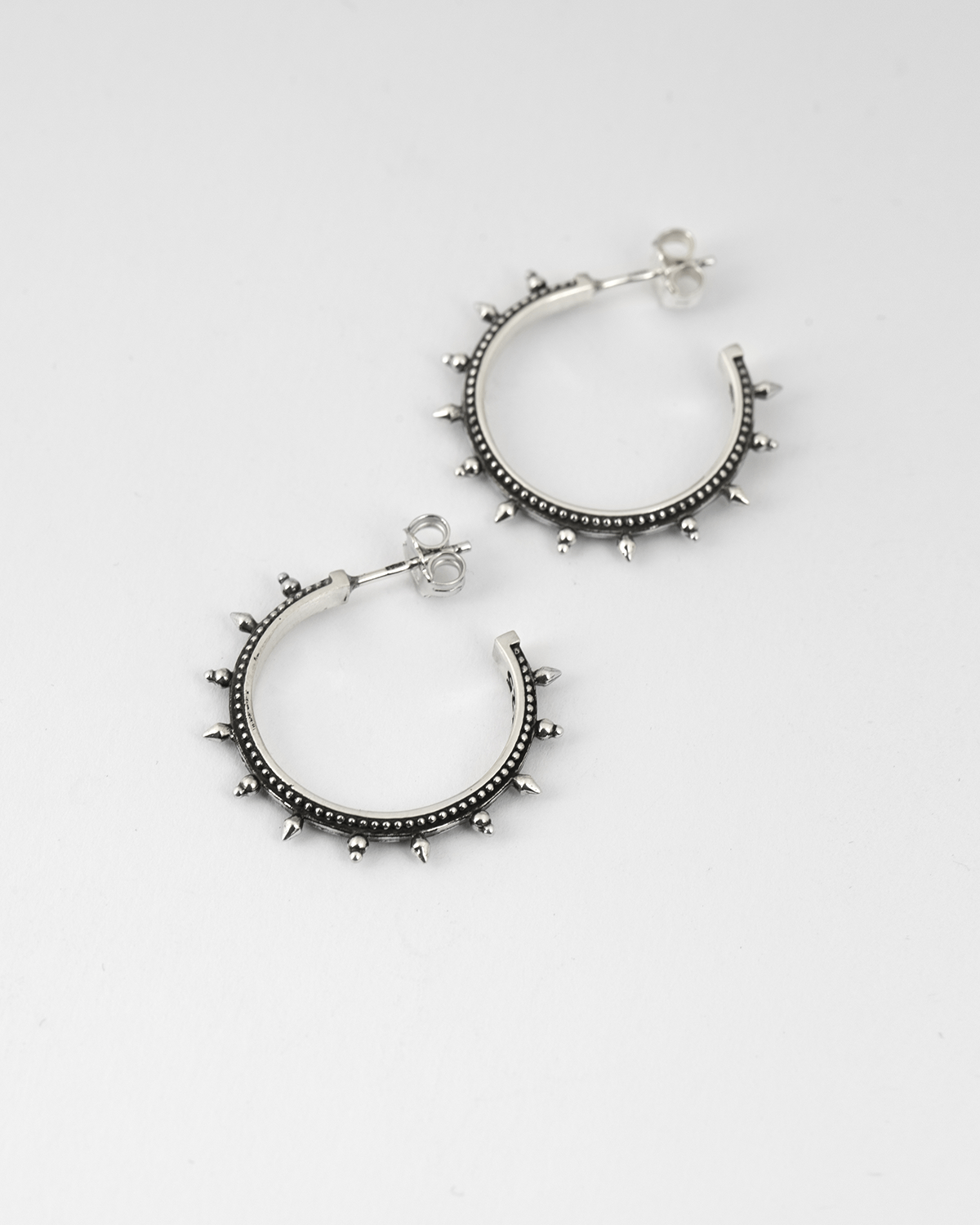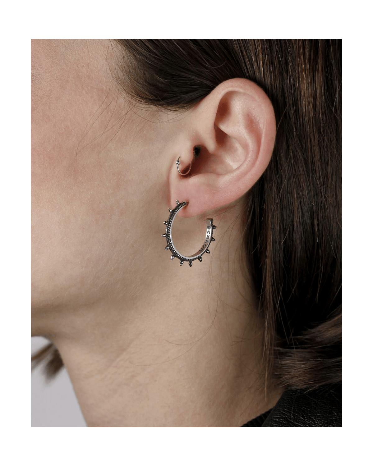 The Ethnic Medium Couple Hoop Earrings are part of the Native Collection and is made in 925 Sterling Silver. Every Nove25 jewel is designed and produced in Italy using the most modern technologies then hand finished to ensure maximum detail and the highest quality. This jewel finish is Polished and it is available in the following sizes: one size.