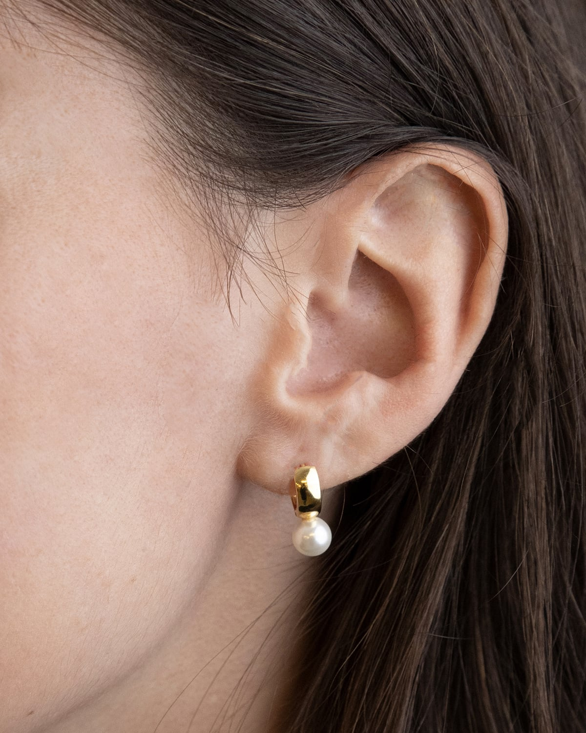 The Pearl Oyster snap earring recalls the opening of an oyster that conceals the surprise of a precious white pearl. This is its version featuring 18k yellow gold plating.