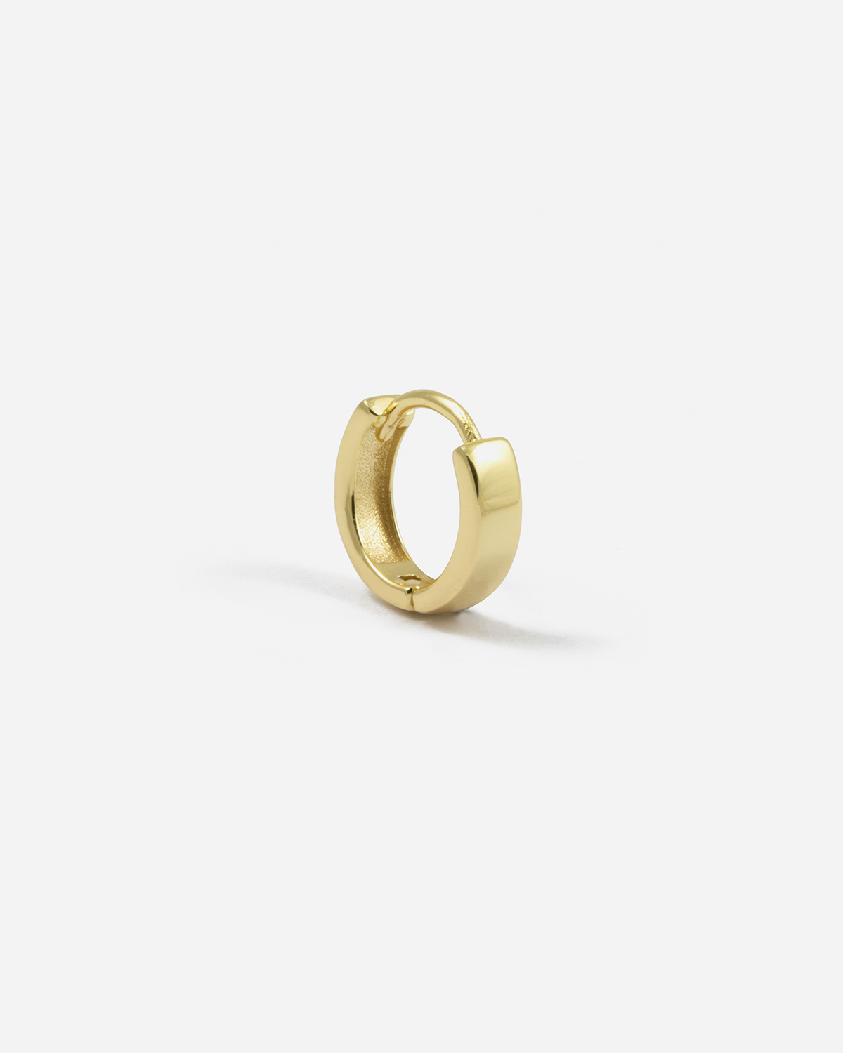 The Lobe Single Hoop Earring is part of the Timeless Collection and is made in 925 Sterling Silver. Every Nove25 jewel is designed and produced in Italy using the most modern technologies then hand finished to ensure maximum detail and the highest quality. This jewel finish is Polished Yellow Gold and it is available one single size.
