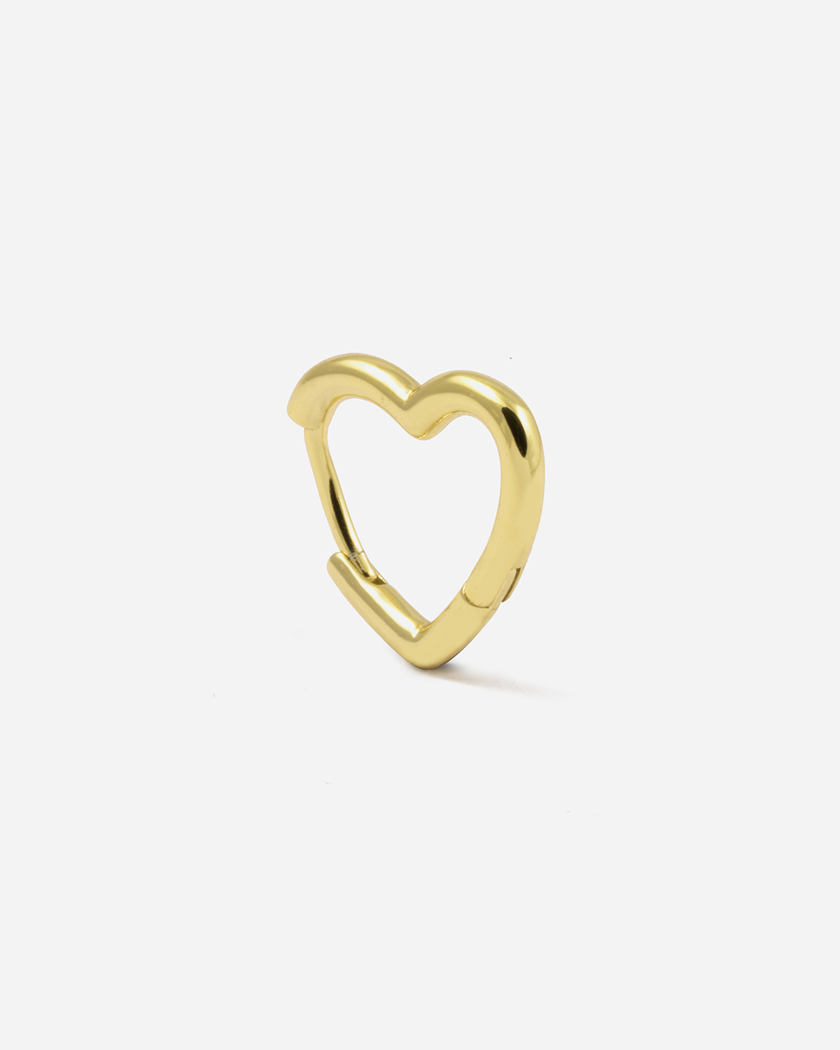The Medium Heart Single Hoop Earring is part of the Timeless Collection and is made in 925 Sterling Silver. Every Nove25 jewel is designed and produced in Italy using the most modern technologies then hand finished to ensure maximum detail and the highest quality. This jewel finish is Polished Yellow Gold and it is available one single size.