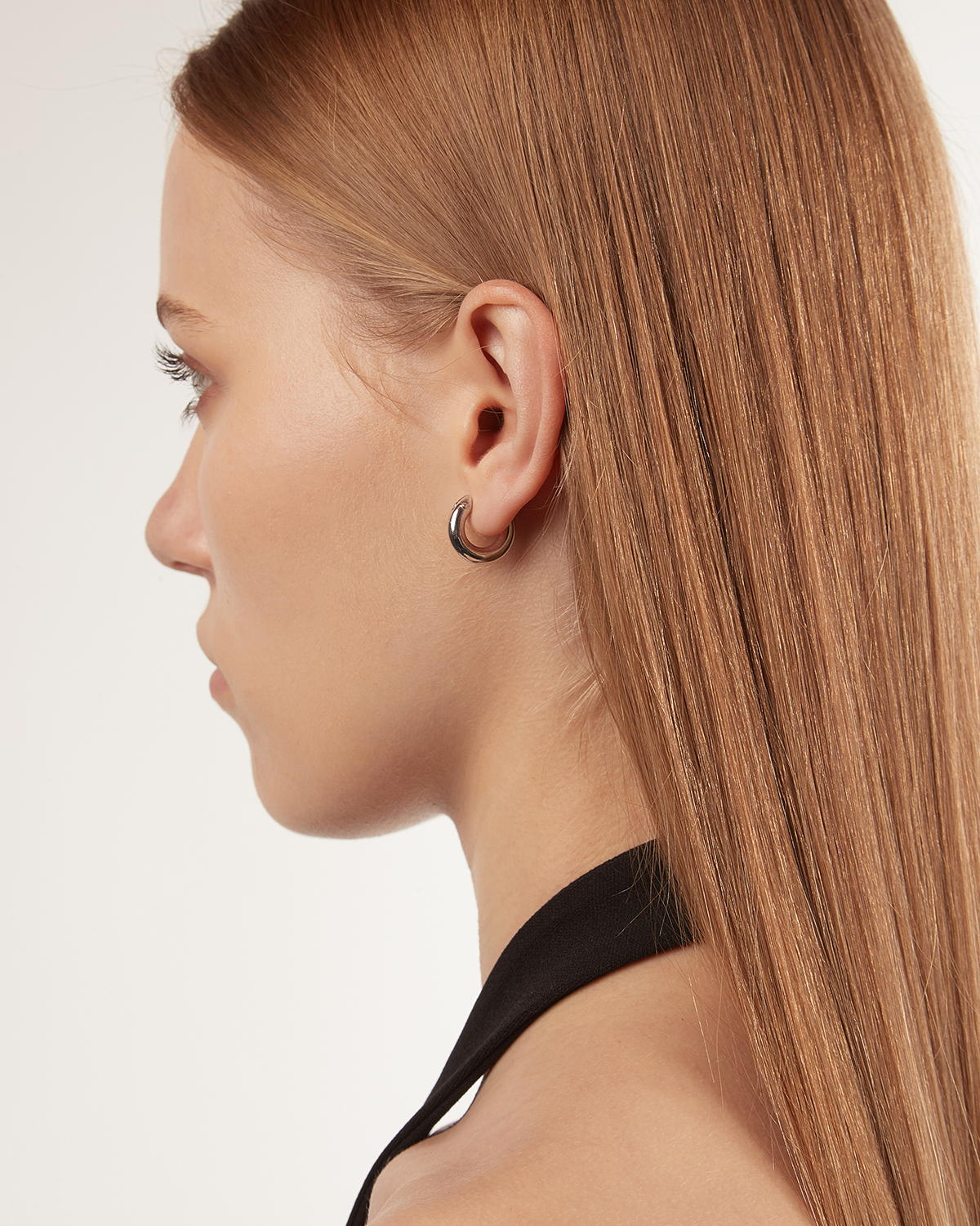 ROUND TUBE 4 CLOSING BRIDGE SINGLE HOOP EARRING D8 MM / POLISHED RHODIUM