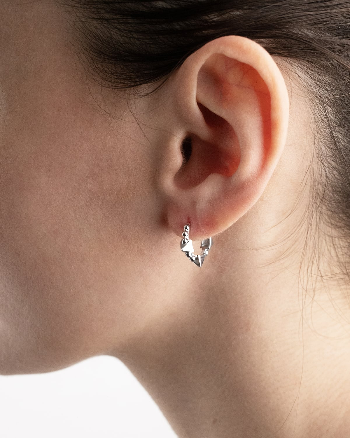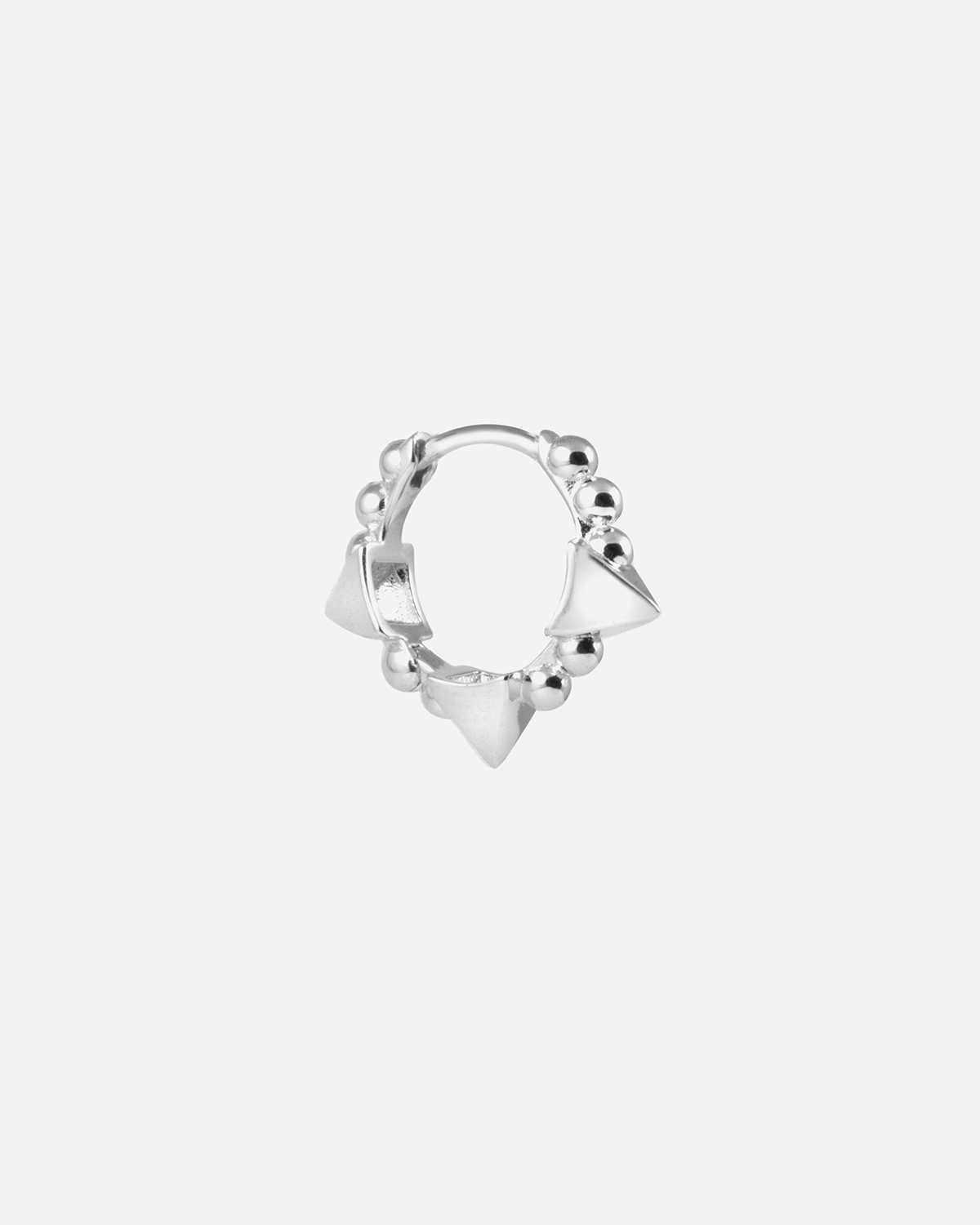 SILVER DECORATED HOOP EARRING WITH PYRAMIDS AND BUBBLES