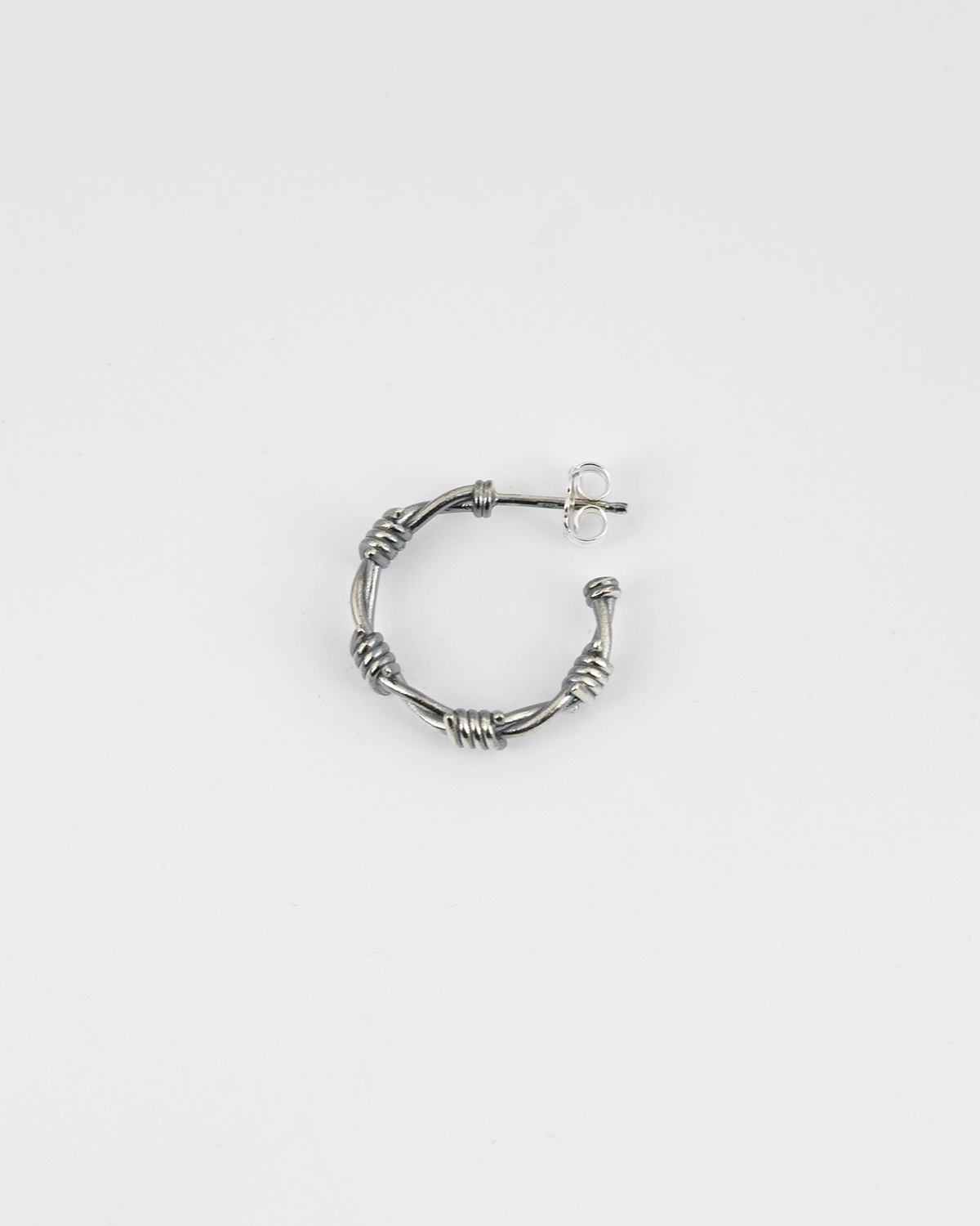 The Small Barbed Wire Single Earring is part of the Barbed Wire Collection and is made in 925 Sterling Silver. Every Nove25 jewel is designed and produced in Italy using the most modern technologies then hand finished to ensure maximum detail and the highest quality. This jewel finish is Polished and it is available in the following sizes: one size.