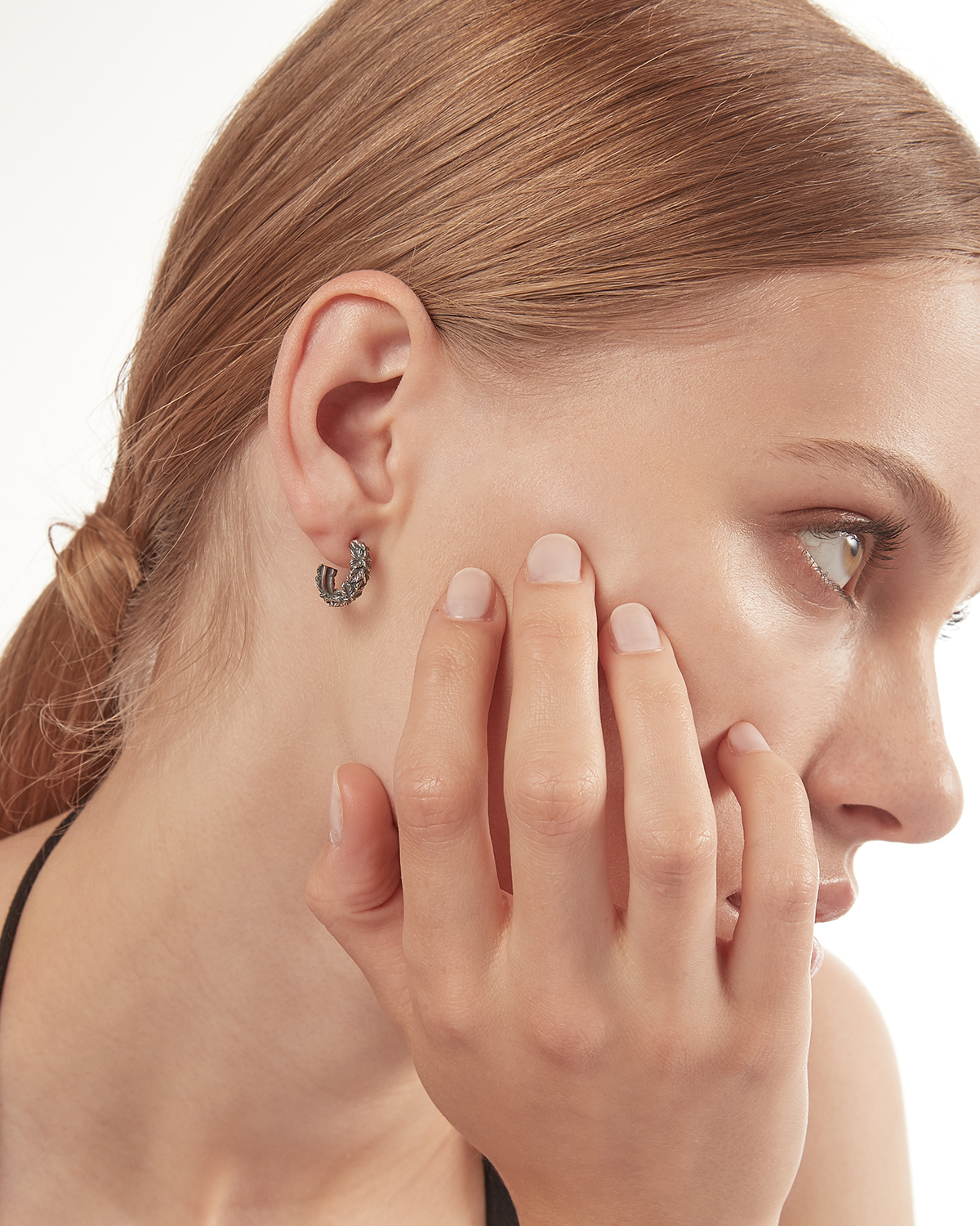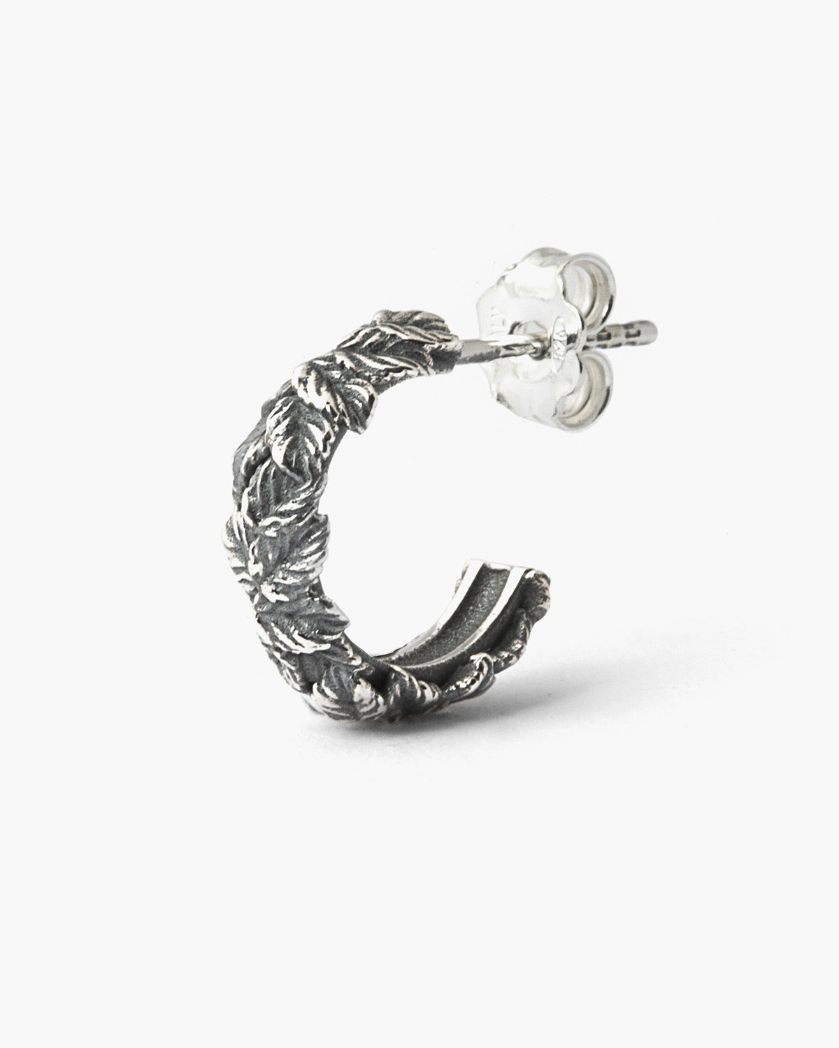 The Small Single Hoop Leaves Earring is part of the Eden Collection and is made in 925 Sterling Silver. Every Nove25 jewel is designed and produced in Italy using the most modern technologies then hand finished to ensure maximum detail and the highest quality. This jewel finish is Polished Burnished and it is available in one size.