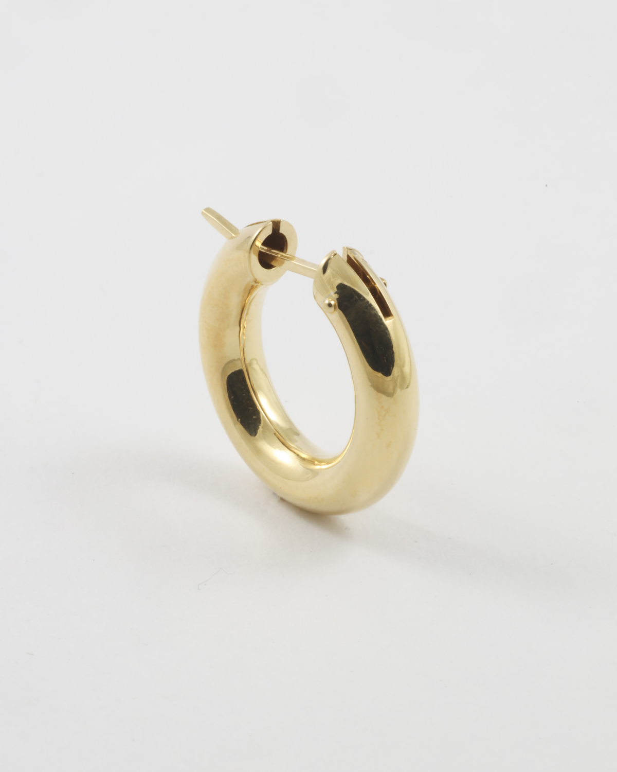 The Round Tube 5 Closing Bridge Single Hoop Earring is part of the Timeless Collection and is made in 925 Sterling Silver. Every Nove25 jewel is designed and produced in Italy using the most modern technologies then hand finished to ensure maximum detail and the highest quality. This jewel finish is Polished Yellow Gold and it is available in the following sizes: 13 mm.