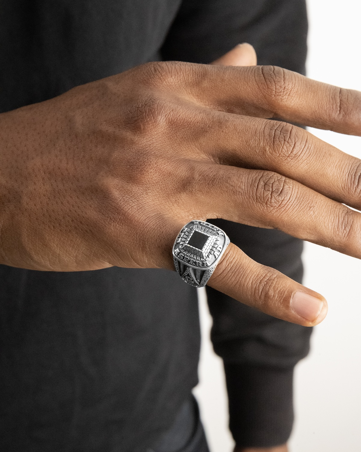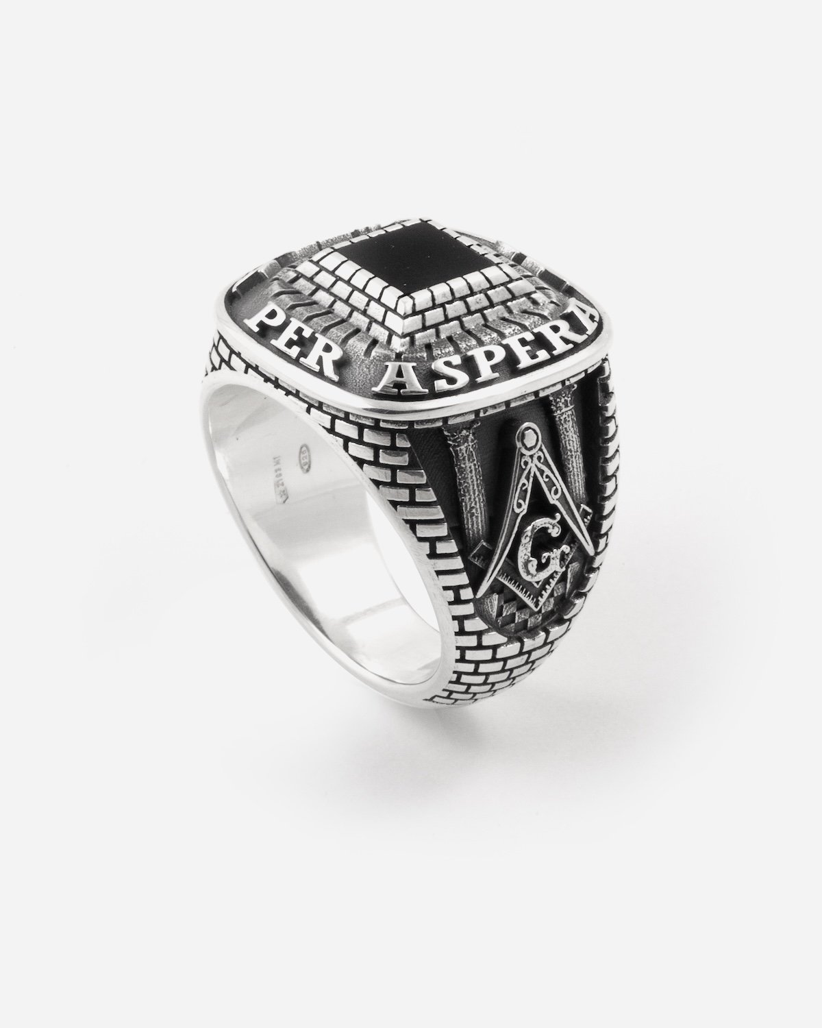The Ad Astra Masonic Celebrative Ring With Black Stone is part of the Traditional Collection and is made in 925 Sterling Silver. Every Nove25 jewel is designed and produced in Italy using the most modern technologies then hand finished to ensure maximum detail and the highest quality. This jewel finish is Polished Burnished and it is available in the following sizes: 13-15-17-19-21-23-25.