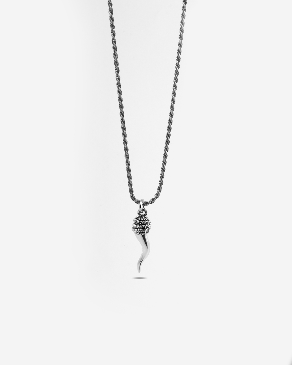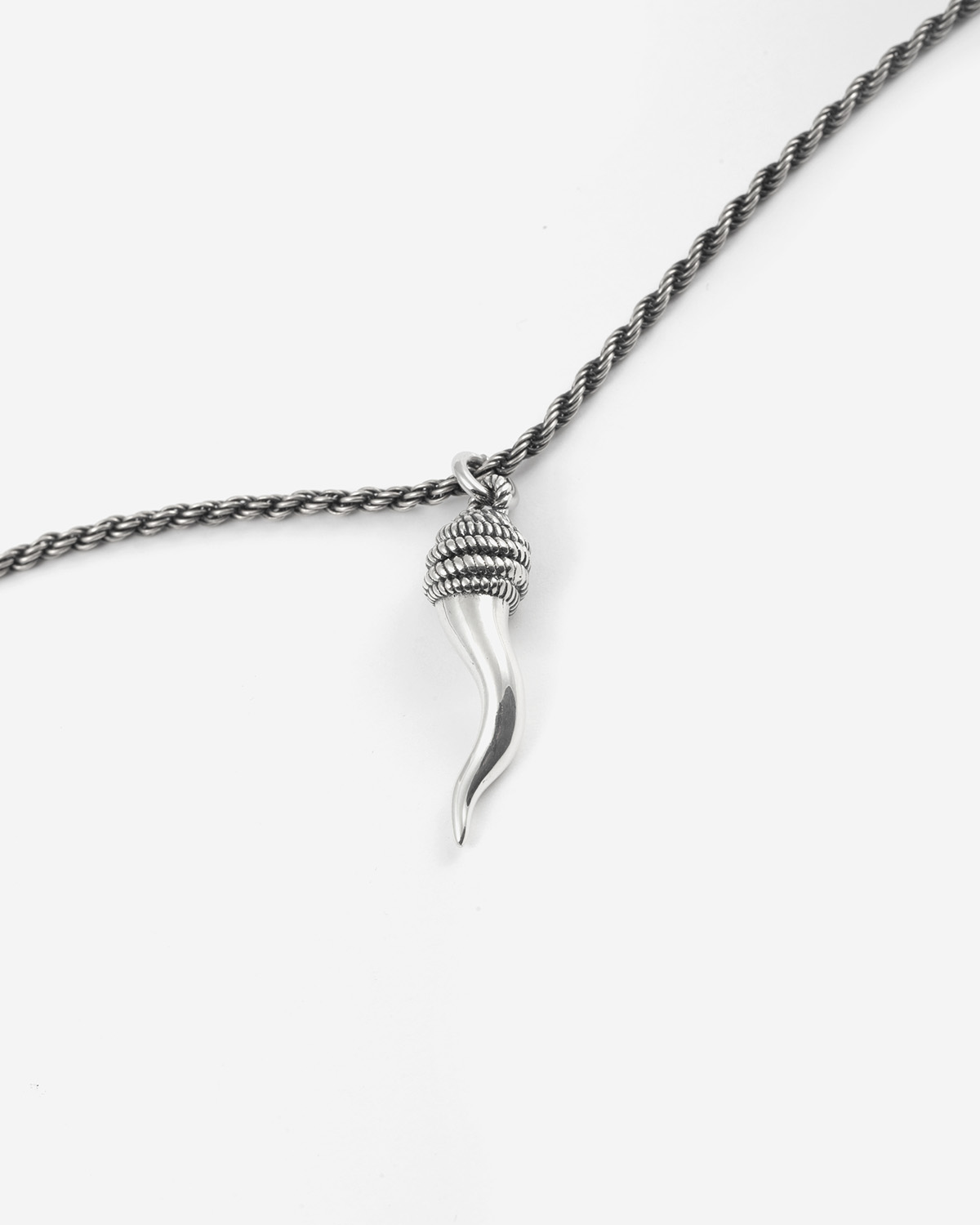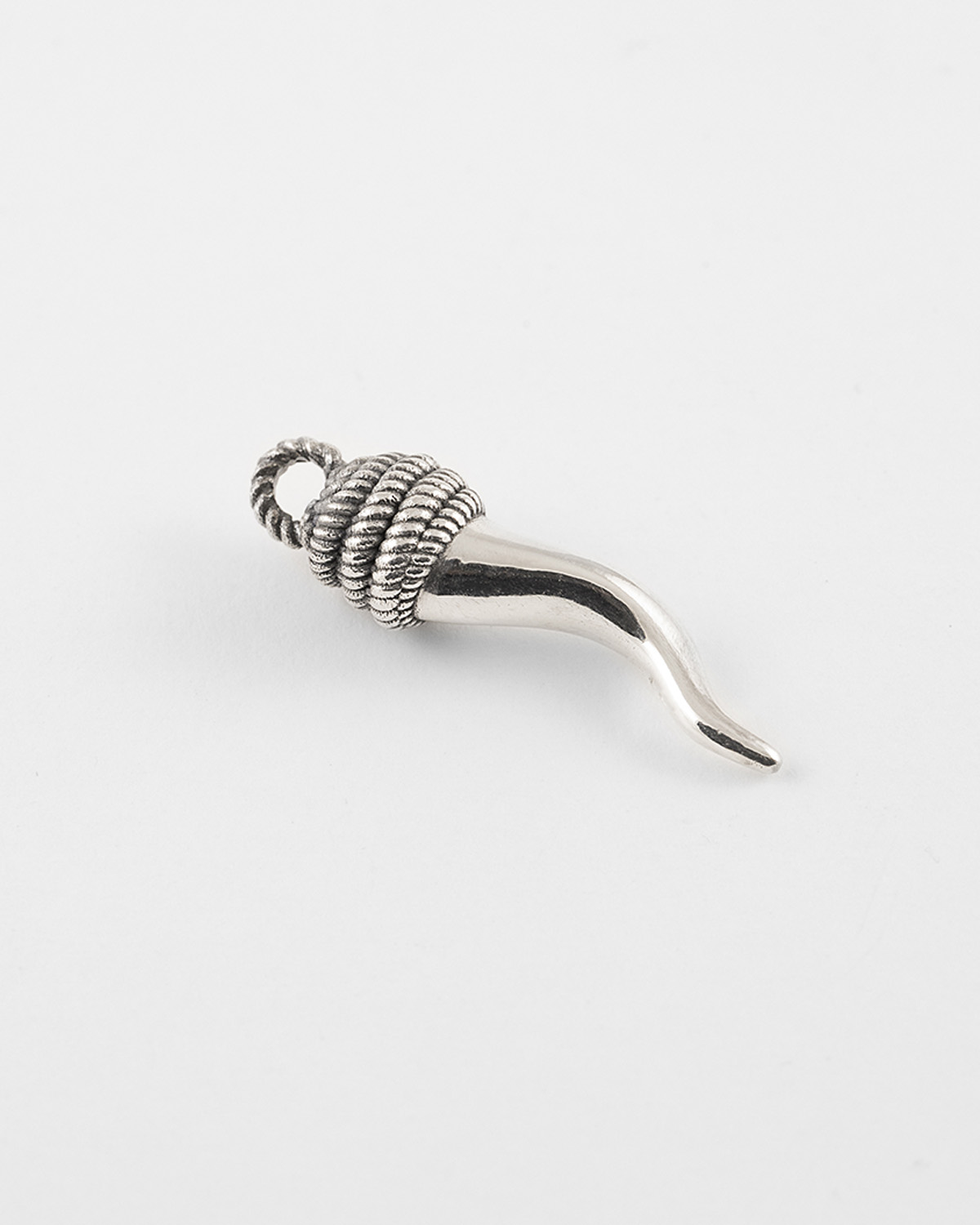 The Rope Horn Pendant is part of the Miniature Collection and is made in 925 Sterling Silver. Every Nove25 jewel is designed and produced in Italy using the most modern technologies then hand finished to ensure maximum detail and the highest quality. This jewel finish is Burnished Polished and it is available in one size.
