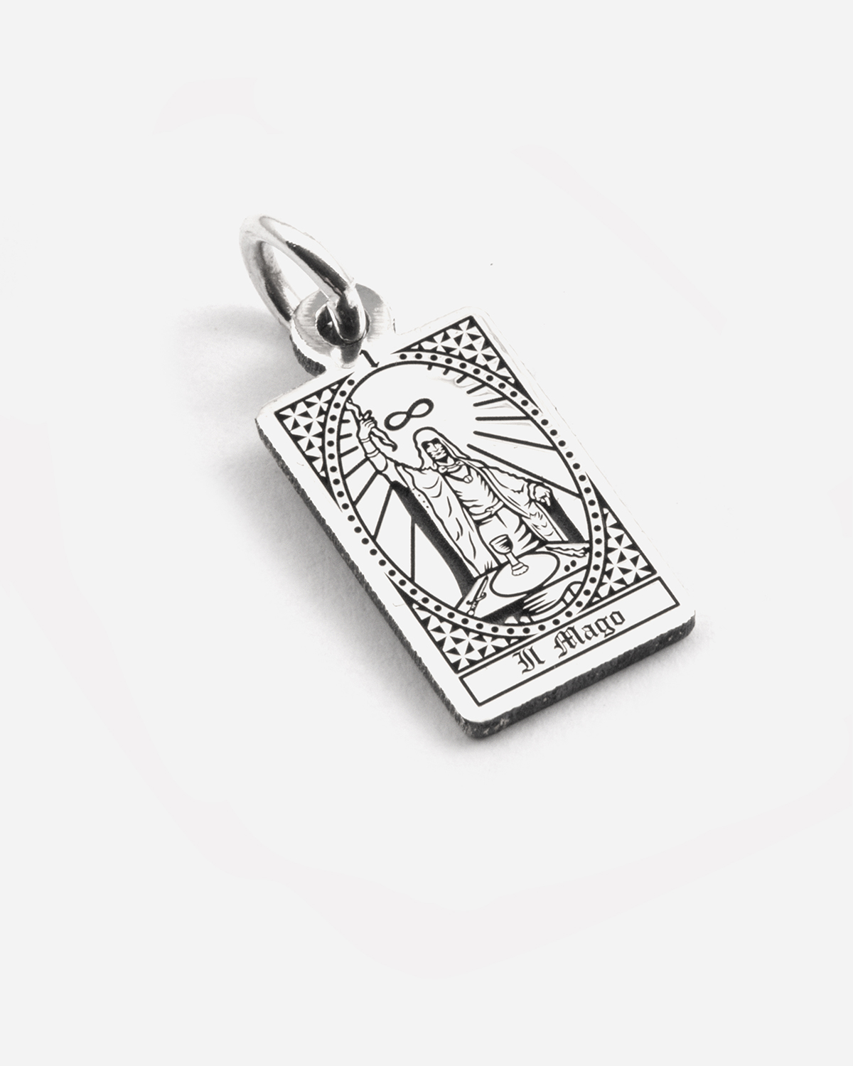 The Magician Tarot Card Pendant is part of the Tarocchi Collection and is made in 925 Sterling Silver. Every Nove25 jewel is designed and produced in Italy using the most modern technologies then hand finished to ensure maximum detail and the highest quality. This jewel finish is Polished Burnished or Yellow Gold and it is available in the following sizes: 20-28 mm.
