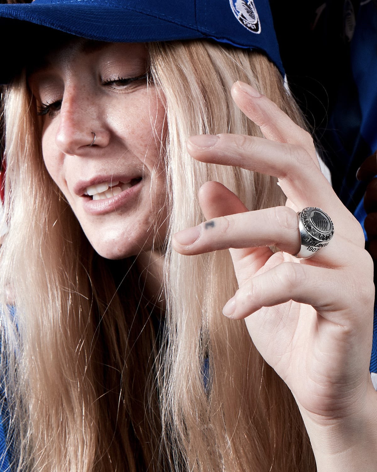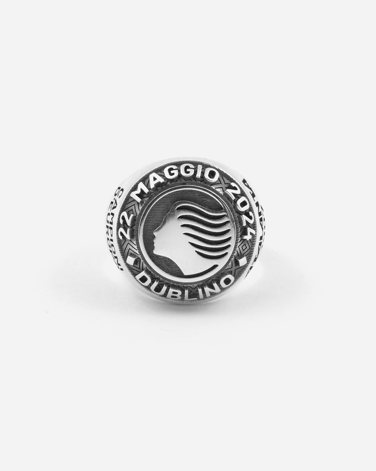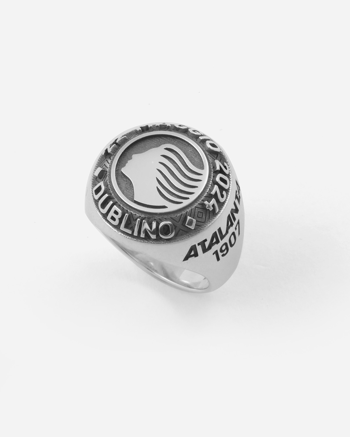 The celebrative ring bears in bas-relief the Dea of Atalanta in polished silver on burnished silver, surrounded by characters and numbers that make up the date and city of the victory. On one side is engraved the name of the team and the date of the club's founding, while the other side bears the inscription "Champions of Europe." Inside the ring the inscription Nove25 seals the partnership between the brand and the champions who raised the cup in Dublin.