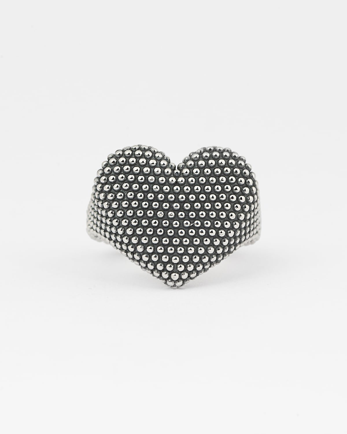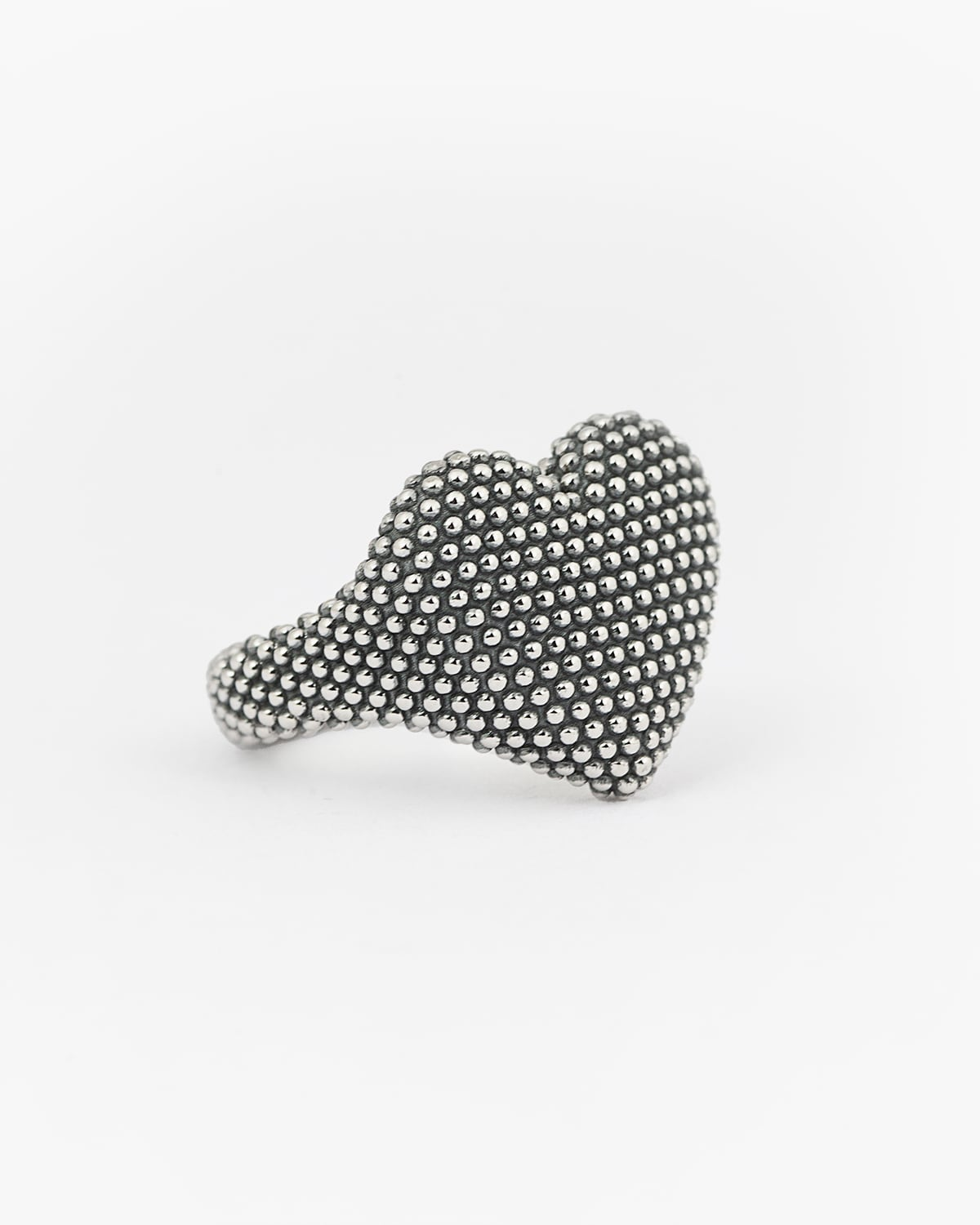 The Dotted Heart Signet Ring is part of the Dotted Collection and is made in 925 Sterling Silver. Every Nove25 jewel is designed and produced in Italy using the most modern technologies then hand finished to ensure maximum detail and the highest quality. This jewel finish is Polished and it is available in the following sizes: 8-10-12-14-16-18.