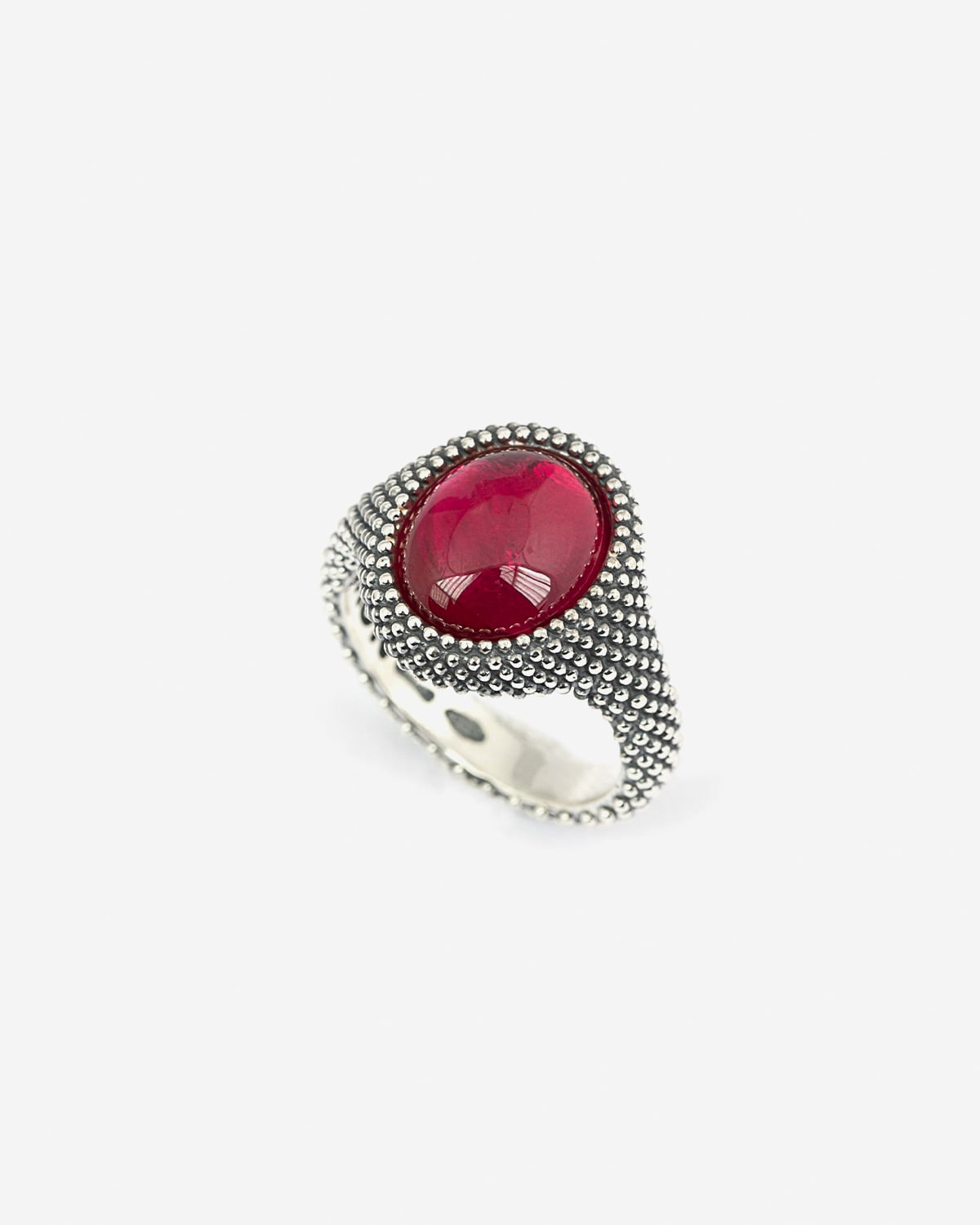 DOTTED OVAL CORUNDUM SIGNET RING